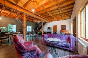 Банкетный зал идеально подойдет для проведения свадебного банкета или дня рождения. Также в вашем распоряжении будет гостиная с камином, где вы сможете приятно провести время. Дом оснащен премиальной мебелью высокого качества.