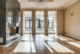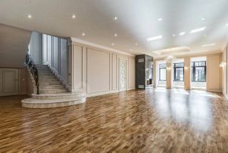 Загородная резиденция площадью 860 м² расположена на лесном участке 25 соток. Светлый фасад выполнен в неоклассическом стиле, облицован штукатуркой и декорирован колоннами, рустовкой и коваными элементами. Современный интерьер оформлен в молочно-кремовых оттенках. Планировка дома включает 6 спален, большую гостиную с камином, роялем и вторым светом, кухню, столовую, тренажерный зал, бильярдную и домашний кинотеатр. Расслабиться в конце дня можно в спа-зоне с бассейном, сауной и хаммамом в доме или в отдельной русской бане на участке с купелью, душевой, кухней и террасой, где рядом расположен подогреваемый открытый бассейн.