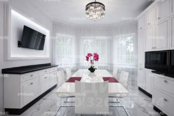 Днем этот дом становится местом, где переплетаются уют и динамика: в гостиной с камином приятно проводить время с семьей, а просторная кухнястоловая идеально подходит для долгих воскресных обедов. Кухня подготовлена под размещение современной техники, а в интерьерах можно легко разместить любую необходимую мебель. Для работы предусмотрен отдельный кабинет - в тишине и уединении легко сосредоточиться на важных делах.