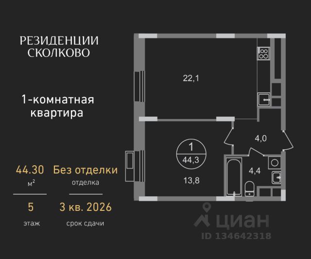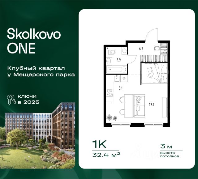 Продается однокомнатная квартира в девятиэтажном монолитном доме жилого комплекса "Резиденции Сколково". Общая площадь квартиры - 43,3 кв. м, этаж 2 из 9. Срок сдачи - 3 квартал 2026 года. ЖК "Резиденции Сколково" - это современный проект бизнес-класса, расположенный в престижном районе Сколково, у западной границы Москвы. Транспортная доступность: - 0 км от МКАД - 10 минут на личном авто до метро "Озёрная" Солнцевской линии - 15 минут на личном авто до Москва-Сити по Кутузовскому проспекту - 20 минут на личном авто до центра по проспекту Генерала Дорохова - 24 минут на личном авто до центра по Мичуринскому проспекту Безопасность: Огороженная, закрытая территория, круглосуточное видеонаблюдение, контроль доступа во внутренний двор. Благоустройство и инфраструктура: Масштабное озеленение в концепции "двора-парка" и множество площадок отдыха для взрослых и детей. В 5 минутах ходьбы расположен Мещерский лесопарк. В жилом комплексе уже построены и работают 2 муниципальных детских сада с бассейном, планируется строительство 1 школы. В непосредственной близости - частные и муниципальные детские сады и школы, кафе и рестораны, продуктовые магазины, салоны красоты и другие готовые объекты городской инфраструктуры. Авторская архитектура: Авторская концепция архитектуры, входные группы на уровне земли. Для удобства жителей на первых этажах предусмотрены помещения для колясок и на -1 этажах для хранения велосипедов.
