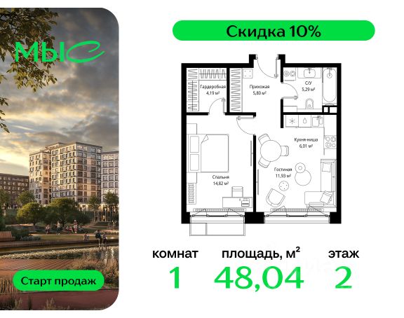 Прямая продажа от застройщика. Продаётся 1-комнатная квартира общей площадью 64.84 м² без отделки в премиальном жилом комплексе "МЫС" на 2-м этаже 12 этажного дома. Квартира расположена в корпусе "Сибирь". Проект МЫС — это, прежде всего, идеальное место для семей. В рамках проекта построят государственную школу, два детских сада и дворец спорта площадью 20 000 м2 с термальным комплексом, выплывным бассейном, фитнес-залом, теннисными, сквош и падел кортами и секциями для детей. На территории площадью, сравнимой с тремя парками Зарядье, появятся кафе и рестораны, пруд с набережной, спортивные и детские площадки, скейт-парк, лыжные и веломаршруты. Расположение: - 2 минуты до скоростной трассы М1 и Минского шоссе; - 10 минут до МКАД; - 15 минут до МЦД Лесной Городок - 20 минут до делового центра "Москва-Сити"; - 28 минут до аэропорта "Внуково". Благоустройство: - велосипедные и лыжные маршруты; - собственная набережная и парк; - лаунж-зоны в окружении природы; - беседки у очага; - дворец спорта площадью 20 000 м²; - термальный комплекс с тремя бассейнами; - 4 теннисных и падел-корта; - 6 сквош-кортов; - многофункциональный спортзал; - скейт-парк; - просторная площадь для прогулок с фонтаном; - детский клуб с творческими секциями; - гастро-доминанта; - кафе у пруда, рестораны, ритейл. Окружение - соседство с лесным фондом; - школа на 1250 мест и 2 детских сада на 350 и 255 мест; - Дубковский и Подушкинский леса, парк "Рассказовка", Мещерский парк.Действуют специальные условия при 100% оплате, подробности уточняйте у менеджера в офисе продаж.