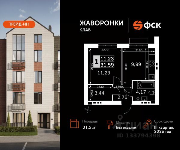 Прямая продажа от застройщика! Загородный жилой комплекс класса Комфорт Плюс. Продаётся 1-к квартира номер 112 общей площадью 31.21 кв.м на 2-м этаже 4 этажного дома. Без отделки. Особенности: - Квартира доступна к покупке в Trade-In. - Линейная планировка - максимальная функциональность и удобство. - Гардеробная - удобство для хранения и организации вещей. - Лоджия - уютное место для отдыха и тишины. - Вид из окна: улица - Бесплатный трансфер до загородного поселка - 5 минут до МЦД-4 - Отличный вариант для проживания или инвестиций - Двухуровневая квартира - пространство и стиль в одном. - Своя благоустроенная набережная в поселке, - Престижная школа и детский сад на территории, - Закрытая территория и видеонаблюдение - Собственный парк вдоль набережной - Круглосуточная охрана - Зона с беседками и барбекю - Живописная река в пешей доступности - Квартиры с высокими потолками 7 м - Малоэтажный квартал у реки Квартиру можно приобрести с предчистовой (White box) и чистовой отделкой. Вам не придётся заниматься черновыми работами, а трудоемкий ремонт мы возьмем на себя! Расположение комплекса: Для создания гармоничного пространства в проекте собрана вся необходимая инфраструктура, начиная от закрытых дворов с детскими площадками и зонами отдыха, тренажерного спортивного зала с мини-саунами и детской комнаты, до благоустроенной набережной, где разместится большой игровой хаб с прогулочным маршрутом и зоной барбекю. Благоприятная роза ветров и отсутствие производств влияют на качество воздуха. Вода и природа успокаивают и заряжают энергией. В жилом комплексе "Жаворонки Клаб" создана современная образовательная среда с полным циклом обучения - от детского сада до старших классов. Школа 560 мест с инновационным оснащением. Детский сад 260 мест. Все образовательные учреждения будут муниципальными и записаться в них сможет каждый маленький житель комплекса. Дорога до школы или детского сада займет не более 5 минут. Ваш ребенок поспит подольше и не опоздает к первому уроку! Здесь также будет расположена муниципальная поликлиника, административно-бытовой комплекс, магазины и кафе. Транспортная доступность: В 30 м от территории ЖК находятся остановки общественного транспорта, откуда можно добраться до ближайших железнодорожных станций Санино (5 мин.), Крёкшино (7 мин.) и Жаворонки (7 мин.), а в 10 минутах - остановки маршрутов, идущих до станций метро Саларьево и Парк Победы. Съезд на Минское шоссе расположен в 700 м от ЖК. Внутренняя инфраструктура: В рамках проекта будут построены муниципальные детский сад и общеобразовательная школа, административно-бытовой комплекс (магазины формата "у дома", точки бытовых услуг, street-retail, кафе, кофейня, аптека, а также многофункциональный торгово-развлекательный центр с ФОК и амбулаторией. Для удобства и комфорта жителей, когда все "под рукой" мы разместили в ЖК бесплатный тренажерный зал с раздевалками и мини-саунами. Сюда можно приходить самостоятельно или с личным тренером для функциональной тренировки. Дл