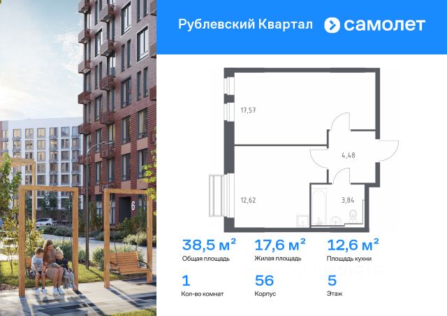 Продается 1-комнатная квартира в доме 17 Город-событие ЖК Лайково.