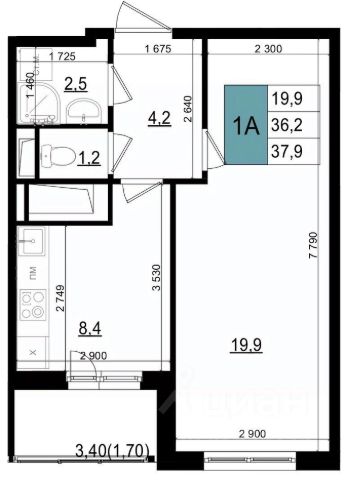 Продается 1-комн. квартира площадью 35,6 кв.м на 5 этаже 24 этажного дома в ЖК "Союзный" от федерального девелопера ГК "Вектор".