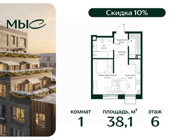 Прямая продажа от застройщика. Продаётся 1-комнатная квартира общей площадью 38.09 м² без отделки в премиальном жилом комплексе "МЫС" на 6-м этаже 12 этажного дома. Квартира расположена в корпусе "Сибирь". Проект МЫС — это, прежде всего, идеальное место для семей. В рамках проекта построят государственную школу, два детских сада и дворец спорта площадью 20 000 м2 с термальным комплексом, выплывным бассейном, фитнес-залом, теннисными, сквош и падел кортами и секциями для детей. На территории площадью, сравнимой с тремя парками Зарядье, появятся кафе и рестораны, пруд с набережной, спортивные и детские площадки, скейт-парк, лыжные и веломаршруты. Расположение: - 2 минуты до скоростной трассы М1 и Минского шоссе; - 10 минут до МКАД; - 15 минут до МЦД Лесной Городок - 20 минут до делового центра "Москва-Сити"; - 28 минут до аэропорта "Внуково". Благоустройство: - велосипедные и лыжные маршруты; - собственная набережная и парк; - лаунж-зоны в окружении природы; - беседки у очага; - дворец спорта площадью 20 000 м²; - термальный комплекс с тремя бассейнами; - 4 теннисных и падел-корта; - 6 сквош-кортов; - многофункциональный спортзал; - скейт-парк; - просторная площадь для прогулок с фонтаном; - детский клуб с творческими секциями; - гастро-доминанта; - кафе у пруда, рестораны, ритейл. Окружение - соседство с лесным фондом; - школа на 1250 мест и 2 детских сада на 350 и 255 мест; - Дубковский и Подушкинский леса, парк "Рассказовка", Мещерский парк. Действуют специальные условия при 100% оплате, подробности уточняйте у менеджера в офисе продаж.