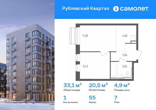 Строим кварталы для жизни с заботой о будущем. Предлагается 1-комнатная квартира комфорт-класса 34,4 кв.м в корпусе 56 на 7 этаже, в ЖК "Рублевский Квартал" Квартира с предчистовой отделкой. Доступность дополнительных опций уточняйте у застройщика. Приобрести квартиру возможно по специальным акциям от застройщика, с текущими условиями акций можно ознакомиться в блоке "Акций". Цена динамическая и может отличаться, уточняйте актуальность у застройщика. Жилой комплекс "Рублевский Квартал" на западе Москвы окружен Подушкинским и Дубковским лесами. Рядом ж/д станция Усово и МЦД-1 "Одинцово". На территории комплекса — школа, детский сад, поликлиника и торговый центр. Архитектура с переменной этажностью от 3 до 12 этажей гармонично вписывается в природу. Закрытый двор-парк, кленовые аллеи и игровые зоны создают уют. Квартиры с отделкой и живописными видами на лес.