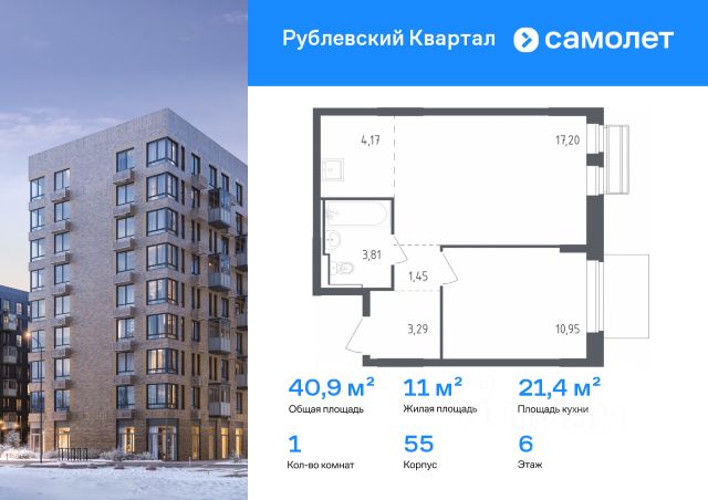 Строим кварталы для жизни с заботой о будущем. Предлагается 1-комнатная квартира комфорт-класса 44,42 кв.м в корпусе 55 на 6 этаже, в ЖК "Рублевский Квартал" Квартира без отделки. Доступность опции "отделка" и возможность комплектации мебелью и декором уточняйте у застройщика. Приобрести квартиру возможно по специальным акциям от застройщика, с текущими условиями акций можно ознакомиться в блоке "Акций". Цена динамическая и может отличаться, уточняйте актуальность у застройщика. Жилой комплекс "Рублевский Квартал" на западе Москвы окружен Подушкинским и Дубковским лесами. Рядом ж/д станция Усово и МЦД-1 "Одинцово". На территории комплекса — школа, детский сад, поликлиника и торговый центр. Архитектура с переменной этажностью от 3 до 12 этажей гармонично вписывается в природу. Закрытый двор-парк, кленовые аллеи и игровые зоны создают уют. Квартиры с отделкой и живописными видами на лес.