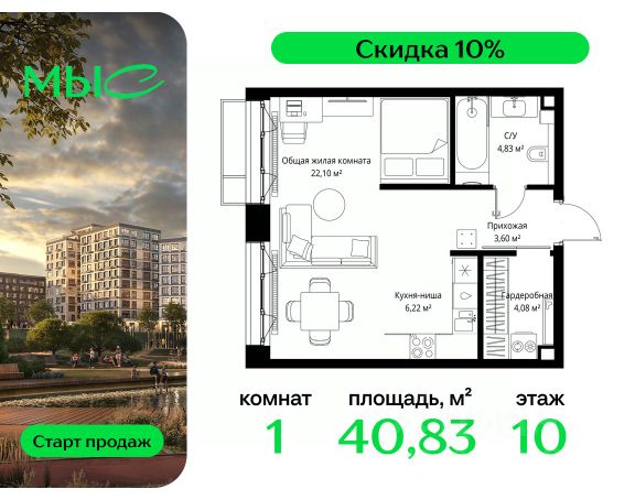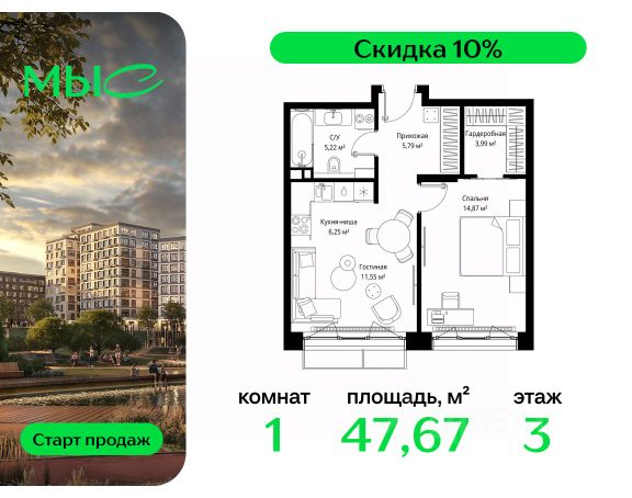 Прямая продажа от застройщика. Продаётся 1-комнатная квартира общей площадью 37.63 м² без отделки в премиальном жилом комплексе "МЫС" на 4-м этаже 12 этажного дома. Квартира расположена в корпусе "Сибирь". Проект МЫС — это, прежде всего, идеальное место для семей. В рамках проекта построят государственную школу, два детских сада и дворец спорта площадью 20 000 м2 с термальным комплексом, выплывным бассейном, фитнес-залом, теннисными, сквош и падел кортами и секциями для детей. На территории площадью, сравнимой с тремя парками Зарядье, появятся кафе и рестораны, пруд с набережной, спортивные и детские площадки, скейт-парк, лыжные и веломаршруты. Расположение: - 2 минуты до скоростной трассы М1 и Минского шоссе; - 10 минут до МКАД; - 15 минут до МЦД Лесной Городок - 20 минут до делового центра "Москва-Сити"; - 28 минут до аэропорта "Внуково". Благоустройство: - велосипедные и лыжные маршруты; - собственная набережная и парк; - лаунж-зоны в окружении природы; - беседки у очага; - дворец спорта площадью 20 000 м²; - термальный комплекс с тремя бассейнами; - 4 теннисных и падел-корта; - 6 сквош-кортов; - многофункциональный спортзал; - скейт-парк; - просторная площадь для прогулок с фонтаном; - детский клуб с творческими секциями; - гастро-доминанта; - кафе у пруда, рестораны, ритейл. Окружение - соседство с лесным фондом; - школа на 1250 мест и 2 детских сада на 350 и 255 мест; - Дубковский и Подушкинский леса, парк "Рассказовка", Мещерский парк.Действуют специальные условия при 100% оплате, подробности уточняйте у менеджера в офисе продаж.