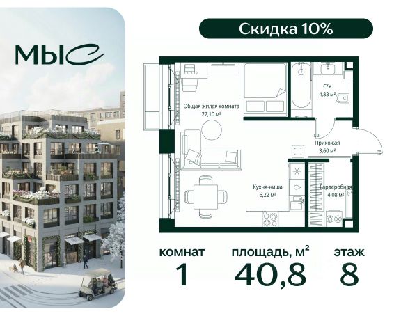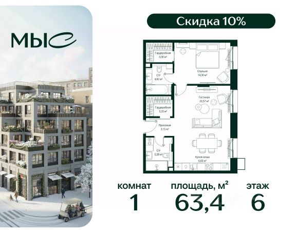 Прямая продажа от застройщика. Продаётся 1-комнатная квартира общей площадью 38.41 м² без отделки в премиальном жилом комплексе "МЫС" на 5-м этаже 12 этажного дома. Квартира расположена в корпусе "Волга". Проект МЫС — это, прежде всего, идеальное место для семей. В рамках проекта построят государственную школу, два детских сада и дворец спорта площадью 20 000 м2 с термальным комплексом, выплывным бассейном, фитнес-залом, теннисными, сквош и падел кортами и секциями для детей. На территории площадью, сравнимой с тремя парками Зарядье, появятся кафе и рестораны, пруд с набережной, спортивные и детские площадки, скейт-парк, лыжные и веломаршруты. Расположение: - 2 минуты до скоростной трассы М1 и Минского шоссе; - 10 минут до МКАД; - 15 минут до МЦД Лесной Городок - 20 минут до делового центра "Москва-Сити"; - 28 минут до аэропорта "Внуково". Благоустройство: - велосипедные и лыжные маршруты; - собственная набережная и парк; - лаунж-зоны в окружении природы; - беседки у очага; - дворец спорта площадью 20 000 м²; - термальный комплекс с тремя бассейнами; - 4 теннисных и падел-корта; - 6 сквош-кортов; - многофункциональный спортзал; - скейт-парк; - просторная площадь для прогулок с фонтаном; - детский клуб с творческими секциями; - гастро-доминанта; - кафе у пруда, рестораны, ритейл. Окружение - соседство с лесным фондом; - школа на 1250 мест и 2 детских сада на 350 и 255 мест; - Дубковский и Подушкинский леса, парк "Рассказовка", Мещерский парк. Действуют специальные условия при 100% оплате, подробности уточняйте у менеджера в офисе продаж.