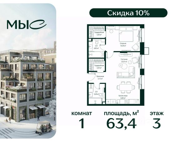 Прямая продажа от застройщика. Продаётся 1-комнатная квартира общей площадью 38.41 м² без отделки в премиальном жилом комплексе "МЫС" на 5-м этаже 12 этажного дома. Квартира расположена в корпусе "Волга". Проект МЫС — это, прежде всего, идеальное место для семей. В рамках проекта построят государственную школу, два детских сада и дворец спорта площадью 20 000 м2 с термальным комплексом, выплывным бассейном, фитнес-залом, теннисными, сквош и падел кортами и секциями для детей. На территории площадью, сравнимой с тремя парками Зарядье, появятся кафе и рестораны, пруд с набережной, спортивные и детские площадки, скейт-парк, лыжные и веломаршруты. Расположение: - 2 минуты до скоростной трассы М1 и Минского шоссе; - 10 минут до МКАД; - 15 минут до МЦД Лесной Городок - 20 минут до делового центра "Москва-Сити"; - 28 минут до аэропорта "Внуково". Благоустройство: - велосипедные и лыжные маршруты; - собственная набережная и парк; - лаунж-зоны в окружении природы; - беседки у очага; - дворец спорта площадью 20 000 м²; - термальный комплекс с тремя бассейнами; - 4 теннисных и падел-корта; - 6 сквош-кортов; - многофункциональный спортзал; - скейт-парк; - просторная площадь для прогулок с фонтаном; - детский клуб с творческими секциями; - гастро-доминанта; - кафе у пруда, рестораны, ритейл. Окружение - соседство с лесным фондом; - школа на 1250 мест и 2 детских сада на 350 и 255 мест; - Дубковский и Подушкинский леса, парк "Рассказовка", Мещерский парк. Действуют специальные условия при 100% оплате, подробности уточняйте у менеджера в офисе продаж. Купить 1-комнатную квартиру в новостройке в городском округе Одинцовском Московской области.