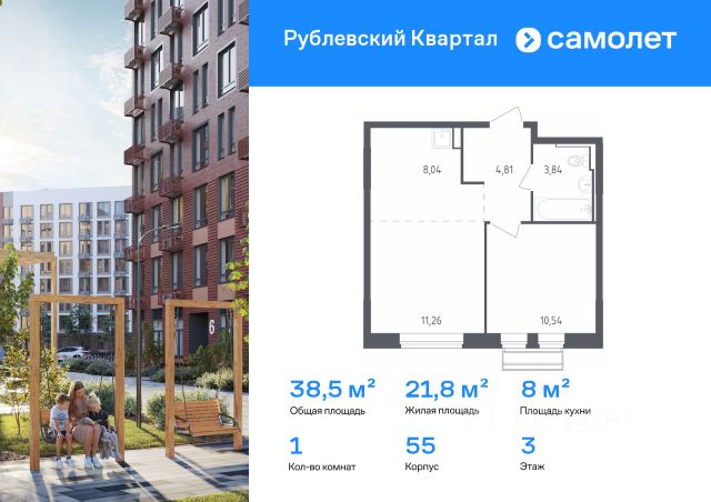 Строим кварталы для жизни с заботой о будущем. Предлагается 1-комнатная квартира комфорт-класса 44,42 кв.м в корпусе 55 на 3 этаже, в ЖК "Рублевский Квартал" Квартира без отделки. Доступность опции "отделка" и возможность комплектации мебелью и декором уточняйте у застройщика. Приобрести квартиру возможно по специальным акциям от застройщика, с текущими условиями акций можно ознакомиться в блоке "Акций". Цена динамическая и может отличаться, уточняйте актуальность у застройщика. Жилой комплекс "Рублевский Квартал" на западе Москвы окружен Подушкинским и Дубковским лесами. Рядом ж/д станция Усово и МЦД-1 "Одинцово". На территории комплекса — школа, детский сад, поликлиника и торговый центр. Архитектура с переменной этажностью от 3 до 12 этажей гармонично вписывается в природу. Закрытый двор-парк, кленовые аллеи и игровые зоны создают уют. Квартиры с отделкой и живописными видами на лес.