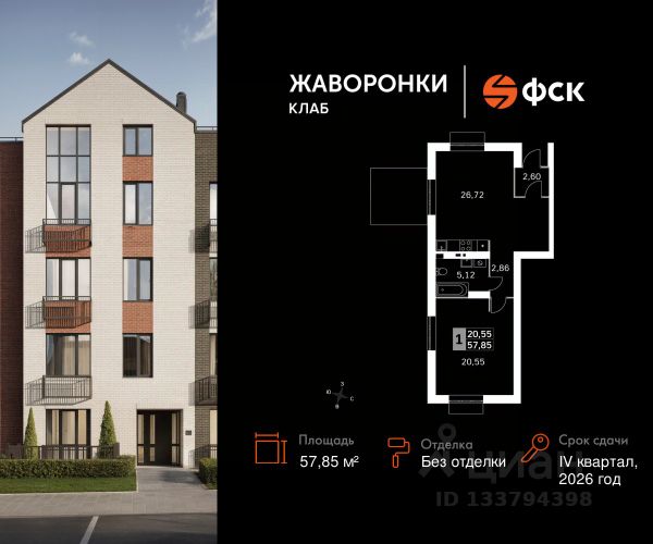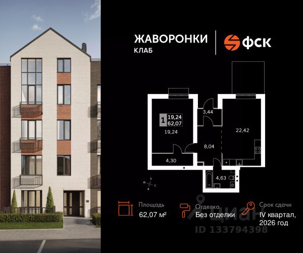 Прямая продажа от застройщика! Загородный жилой комплекс класса Комфорт Плюс. Продаётся 1-к квартира 119 общей площадью 29.03 кв.м на 2-м этаже 4 этажного дома. Без отделки. Расположение комплекса: Для создания гармоничного пространства в проекте собрана вся необходимая инфраструктура, начиная от закрытых дворов с детскими площадками и зонами отдыха, тренажерного спортивного зала с мини-саунами и детской комнаты, до благоустроенной набережной, где разместится большой игровой хаб с прогулочным маршрутом и зоной барбекю. Благоприятная роза ветров и отсутствие производств влияют на качество воздуха. Вода и природа успокаивают и заряжают энергией. В жилом комплексе "Жаворонки Клаб" создана современная образовательная среда с полным циклом обучения от детского сада до старших классов. Школа 560 мест с инновационным оснащением. Детский сад 260 мест. Все образовательные учреждения будут муниципальными и записаться в них сможет каждый маленький житель комплекса. Дорога до школы или детского сада займет не более 5 минут. Ваш ребенок поспит подольше и не опоздает к первому уроку! Здесь также будет расположена муниципальная поликлиника, административно-бытовой комплекс, магазины и кафе. Транспортная доступность: В 30 м от территории ЖК находятся остановки общественного транспорта, откуда можно добраться до ближайших железнодорожных станций Санино (5 мин.), Крёкшино (7 мин.) и Жаворонки (7 мин.), а в 10 минутах - остановки маршрутов, идущих до станций метро Саларьево и Парк Победы. Съезд на Минское шоссе расположен в 700 м от ЖК. Внутренняя инфраструктура: В рамках проекта будут построены муниципальные детский сад и общеобразовательная школа, административно-бытовой комплекс (магазины формата "у дома", точки бытовых услуг, street-retail, кафе, кофейня, аптека, а также многофункциональный торгово-развлекательный центр с ФОК и амбулаторией. Для удобства и комфорта жителей, когда все "под рукой" мы разместили в ЖК бесплатный тренажерный зал с раздевалками и мини-саунами. Сюда можно приходить самостоятельно или с личным тренером для функциональной тренировки. Для детей обустроена игровая с множеством развивающих сюжетных игр, а также различные "лазалки". Эта детская комната также подойдет для празднования дня рождения ребенка.