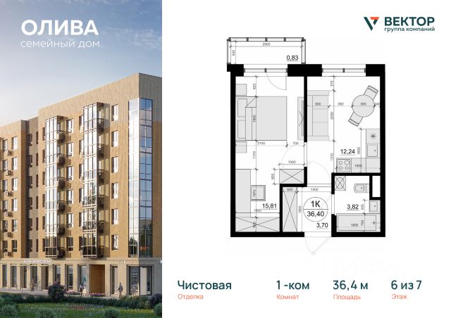 Продается 1-комн. квартира площадью 38,39 кв.м на 3 этаже 7 этажного дома в ЖК "Семейный дом Олива" от федерального девелопера ГК "Вектор". ЖК "Олива" — современный семейный комплекс комфорт-класса с продуманной инфраструктурой и удобной транспортной доступностью Территория жилого комплекса "Олива" организована с заботой о комфорте жителей. Здесь предусмотрены спортивные площадки, прогулочные дорожки среди зеленых насаждений и зоны отдыха с лавочками и беседками. Центральная часть двора занимает детский игровой комплекс, обеспечивая безопасное пространство для игр и активного времяпрепровождения детей. Парковка рассчитана на 140 мест на территории комплекса и дополнительно 96 мест за пределами. Подземная парковка не предусмотрена. Комплекс предлагает квартиры разных форматов — от компактных студий до трехкомнатных апартаментов площадью 2877 м². Большинство квартир имеют остекленные балконы, которые можно использовать как дополнительные зоны отдыха. Планировки продуманы для рационального использования пространства. Доступны варианты с черновой отделкой, а также полностью готовые квартиры с ремонтом в двух цветовых решениях, что позволяет выбрать жилье под свой вкус. Архитектура комплекса выполнена по монолитно-кирпичной технологии с облицовкой стен клинкерным кирпичом различных оттенков. Фасады выдержаны в минималистичном стиле со светло-коричневой и темно-серой палитрой. В отделке применяются экологичные материалы: керамогранит и декоративная штукатурка. Входные зоны спроектированы с учетом функциональности и удобства, включая помещения для хранения колясок. На первом этаже каждого корпуса расположены лобби с дизайнерским оформлением. Каждый подъезд оборудован двумя лифтами: пассажирским и грузопассажирским. ЖК "Олива" удобно расположен с точки зрения транспортной доступности. В нескольких минутах пешком находятся остановки наземного общественного транспорта, а также железнодорожная станция и станция МЦД-4 "Лесной городок". Автомобилисты оценят близость Минского шоссе (500 м), по которому можно доехать до МКАД за 15 км, а также доступ к платной автомагистрали М-1. Дорога до станции метро "Парк Победы" занимает около получаса, а до аэропорта Внуково — примерно 20 минут. На первых этажах домов размещены коммерческие помещения: магазины, кафе и сервисные службы. Это позволяет жителям пользоваться всеми необходимыми услугами и товарами, не покидая комплекс. В шаговой доступности находятся социальные объекты: две школы, детский сад, медицинский центр, санаторий, дом культуры "Дубки" и небольшой парк "Семейный". Застройщик комплекса — федеральная компания "Вектор", работающая на строительном рынке более десяти лет. Компания реализует проекты полного цикла, включая жилую и коммерческую недвижимость, социальные объекты, инфраструктурные элементы и рекреационные территории. За годы работы "Вектор" построил более миллиона квадратных метров жилой и инфраструктурной недвижимости в Подмосковье и Краснодарском крае, создавая современные и комфортные простран