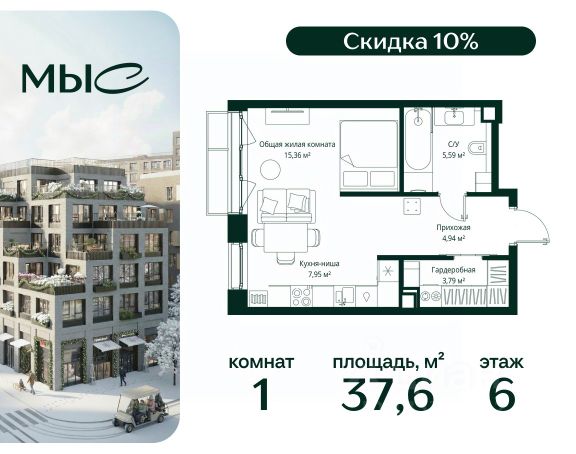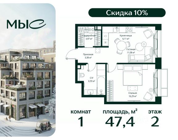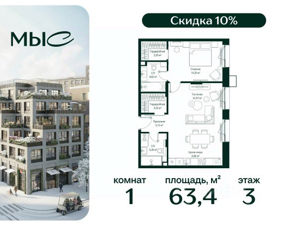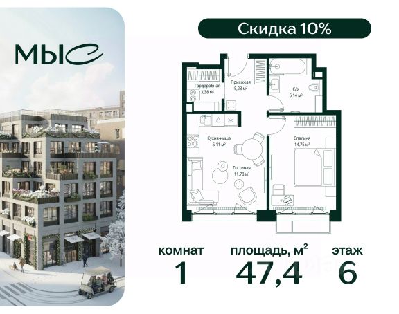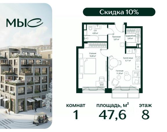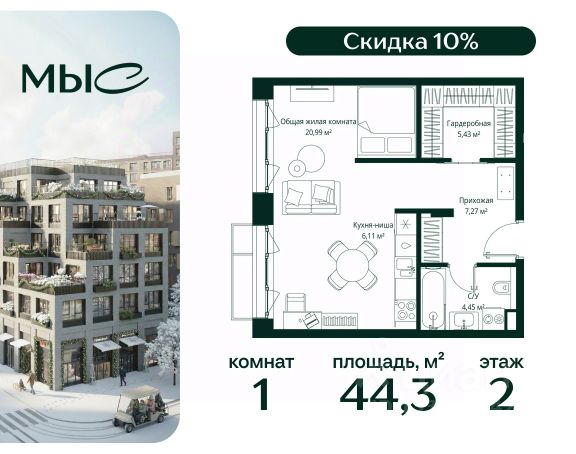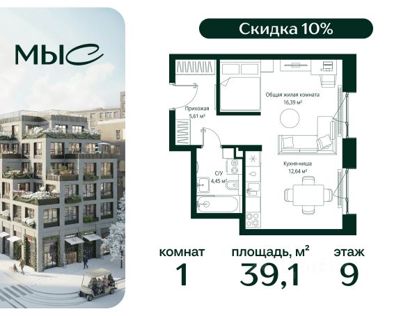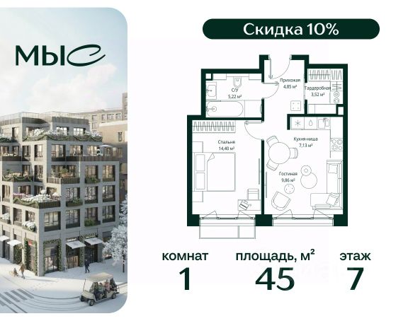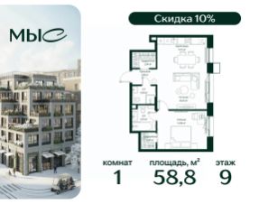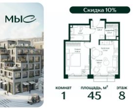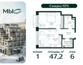 Прямая продажа от застройщика. Продаётся 1-комнатная квартира общей площадью 43.03 м² без отделки в премиальном жилом комплексе "МЫС" на 7-м этаже 12 этажного дома. Квартира расположена в корпусе "Волга". Проект МЫС — это, прежде всего, идеальное место для семей. В рамках проекта построят государственную школу, два детских сада и дворец спорта площадью 20 000 м2 с термальным комплексом, выплывным бассейном, фитнес-залом, теннисными, сквош и падел кортами и секциями для детей. На территории площадью, сравнимой с тремя парками Зарядье, появятся кафе и рестораны, пруд с набережной, спортивные и детские площадки, скейт-парк, лыжные и веломаршруты. Расположение: - 2 минуты до скоростной трассы М1 и Минского шоссе; - 10 минут до МКАД; - 15 минут до МЦД Лесной Городок - 20 минут до делового центра "Москва-Сити"; - 28 минут до аэропорта "Внуково". Благоустройство: - велосипедные и лыжные маршруты; - собственная набережная и парк; - лаунж-зоны в окружении природы; - беседки у очага; - дворец спорта площадью 20 000 м²; - термальный комплекс с тремя бассейнами; - 4 теннисных и падел-корта; - 6 сквош-кортов; - многофункциональный спортзал; - скейт-парк; - просторная площадь для прогулок с фонтаном; - детский клуб с творческими секциями; - гастро-доминанта; - кафе у пруда, рестораны, ритейл. Окружение - соседство с лесным фондом; - школа на 1250 мест и 2 детских сада на 350 и 255 мест; - Дубковский и Подушкинский леса, парк "Рассказовка", Мещерский парк.Действуют специальные условия при 100% оплате, подробности уточняйте у менеджера в офисе продаж. Продается 1-комнатная квартира первичка в деревне Ликино Московской области.