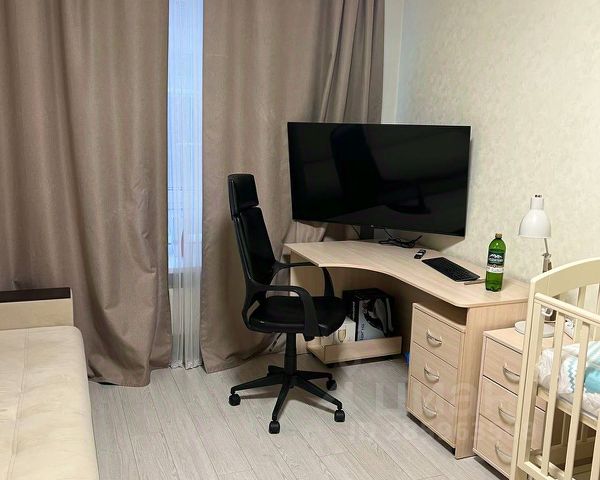 Кухня просторная, оборудована газовой плитой. В комнате установлен вместительный шкаф-купе, который позволяет удобно хранить вещи. Дом оснащён мусоропроводом, а также двумя пассажирскими лифтами и одним грузовым.