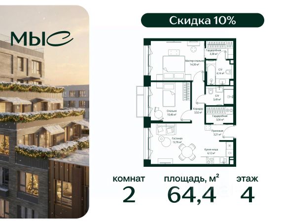 Указанная акционная стоимость доступна при 100% оплате или ипотеке без субсидирования. Цена действует до 31.12.2025 23:59:00. Стоимость без акции 8931990. Продаётся квартира с 2 комнатами общей площадью 34.60 кв. метров на 4 этаже жилого квартала комфорт-класса "Равновесие". Срок сдачи: 2 кв. 2024 На территории комплекса будет возведен детский сад на 360 мест, а на первых этажах жилых домов откроются кафе, магазины и все необходимое для удобства жителей. Локация "Равновесия" выделяется среди других пригородных ЖК разнообразием быстрых маршрутов до Москвы. Для автомобилистов преимуществом станут удобные выезды на Можайское шоссе, Рублёво-Успенское шоссе, Минское шоссе с платной трассой и другие. Также в пешей доступности находятся две ж/д станции — "Жаворонки" и "Здравница". Дорога на электропоезде до делового центра "Москва-Сити" составит всего 35 минут. Особенности ЖК: - Малоэтажная застройка: 4-6 этажей; - Благоустроенный пешеходный бульвар; - Пространства для отдыха и спорта; - Квартиры с террасами на последних этажах; - Квартиры с отдельным входом на первых этажах; - Внутренняя территория квартала свободна от машин; - Безбарьерная среда; - Помещения для хранения детских колясок и спортивного инвентаря.