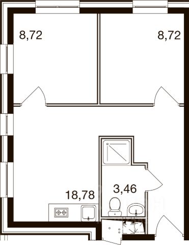 - 2 просторные комнаты правильной формы 18,6кв.м. (+ лоджия застекленная) и 18кв.м.