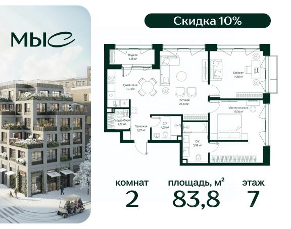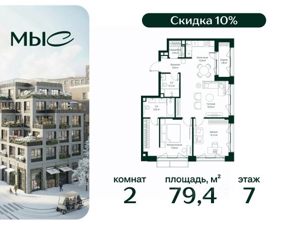 Прямая продажа от застройщика. Продаётся 2-комнатная квартира общей площадью 64.60 м² без отделки в премиальном жилом комплексе "МЫС" на 7-м этаже 12 этажного дома. Квартира расположена в корпусе "Сибирь". Проект МЫС — это, прежде всего, идеальное место для семей. В рамках проекта построят государственную школу, два детских сада и дворец спорта площадью 20 000 м2 с термальным комплексом, выплывным бассейном, фитнес-залом, теннисными, сквош и падел кортами и секциями для детей. На территории площадью, сравнимой с тремя парками Зарядье, появятся кафе и рестораны, пруд с набережной, спортивные и детские площадки, скейт-парк, лыжные и веломаршруты. Расположение: - 2 минуты до скоростной трассы М1 и Минского шоссе; - 10 минут до МКАД; - 15 минут до МЦД Лесной Городок - 20 минут до делового центра "Москва-Сити"; - 28 минут до аэропорта "Внуково". Благоустройство: - велосипедные и лыжные маршруты; - собственная набережная и парк; - лаунж-зоны в окружении природы; - беседки у очага; - дворец спорта площадью 20 000 м²; - термальный комплекс с тремя бассейнами; - 4 теннисных и падел-корта; - 6 сквош-кортов; - многофункциональный спортзал; - скейт-парк; - просторная площадь для прогулок с фонтаном; - детский клуб с творческими секциями; - гастро-доминанта; - кафе у пруда, рестораны, ритейл. Окружение - соседство с лесным фондом; - школа на 1250 мест и 2 детских сада на 350 и 255 мест; - Дубковский и Подушкинский леса, парк "Рассказовка", Мещерский парк.Действуют специальные условия при 100% оплате, подробности уточняйте у менеджера в офисе продаж.