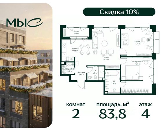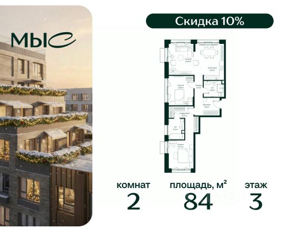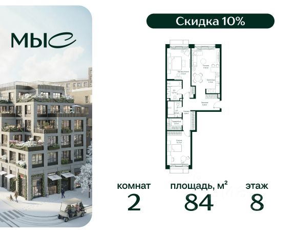 Прямая продажа от застройщика. Продаётся 2-комнатная квартира общей площадью 80.85 м² без отделки в премиальном жилом комплексе "МЫС" на 2-м этаже 12 этажного дома. Квартира расположена в корпусе "Волга". Проект МЫС — это, прежде всего, идеальное место для семей. В рамках проекта построят государственную школу, два детских сада и дворец спорта площадью 20 000 м2 с термальным комплексом, выплывным бассейном, фитнес-залом, теннисными, сквош и падел кортами и секциями для детей. На территории площадью, сравнимой с тремя парками Зарядье, появятся кафе и рестораны, пруд с набережной, спортивные и детские площадки, скейт-парк, лыжные и веломаршруты. Расположение: - 2 минуты до скоростной трассы М1 и Минского шоссе; - 10 минут до МКАД; - 15 минут до МЦД Лесной Городок - 20 минут до делового центра "Москва-Сити"; - 28 минут до аэропорта "Внуково". Благоустройство: - велосипедные и лыжные маршруты; - собственная набережная и парк; - лаунж-зоны в окружении природы; - беседки у очага; - дворец спорта площадью 20 000 м²; - термальный комплекс с тремя бассейнами; - 4 теннисных и падел-корта; - 6 сквош-кортов; - многофункциональный спортзал; - скейт-парк; - просторная площадь для прогулок с фонтаном; - детский клуб с творческими секциями; - гастро-доминанта; - кафе у пруда, рестораны, ритейл. Окружение - соседство с лесным фондом; - школа на 1250 мест и 2 детских сада на 350 и 255 мест; - Дубковский и Подушкинский леса, парк "Рассказовка", Мещерский парк. Действуют специальные условия при 100% оплате, подробности уточняйте у менеджера в офисе продаж. 2-комнатная квартира в ипотеку в деревне Ликино Московской области.