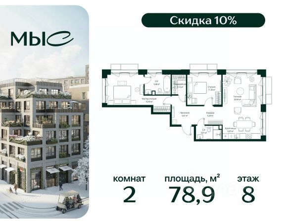 Прямая продажа от застройщика. Продаётся 2-комнатная квартира общей площадью 80.85 м² без отделки в премиальном жилом комплексе "МЫС" на 2-м этаже 12 этажного дома. Квартира расположена в корпусе "Волга". Проект МЫС — это, прежде всего, идеальное место для семей. В рамках проекта построят государственную школу, два детских сада и дворец спорта площадью 20 000 м2 с термальным комплексом, выплывным бассейном, фитнес-залом, теннисными, сквош и падел кортами и секциями для детей. На территории площадью, сравнимой с тремя парками Зарядье, появятся кафе и рестораны, пруд с набережной, спортивные и детские площадки, скейт-парк, лыжные и веломаршруты. Расположение: - 2 минуты до скоростной трассы М1 и Минского шоссе; - 10 минут до МКАД; - 15 минут до МЦД Лесной Городок - 20 минут до делового центра "Москва-Сити"; - 28 минут до аэропорта "Внуково". Благоустройство: - велосипедные и лыжные маршруты; - собственная набережная и парк; - лаунж-зоны в окружении природы; - беседки у очага; - дворец спорта площадью 20 000 м²; - термальный комплекс с тремя бассейнами; - 4 теннисных и падел-корта; - 6 сквош-кортов; - многофункциональный спортзал; - скейт-парк; - просторная площадь для прогулок с фонтаном; - детский клуб с творческими секциями; - гастро-доминанта; - кафе у пруда, рестораны, ритейл. Окружение - соседство с лесным фондом; - школа на 1250 мест и 2 детских сада на 350 и 255 мест; - Дубковский и Подушкинский леса, парк "Рассказовка", Мещерский парк.Действуют специальные условия при 100% оплате, подробности уточняйте у менеджера в офисе продаж.