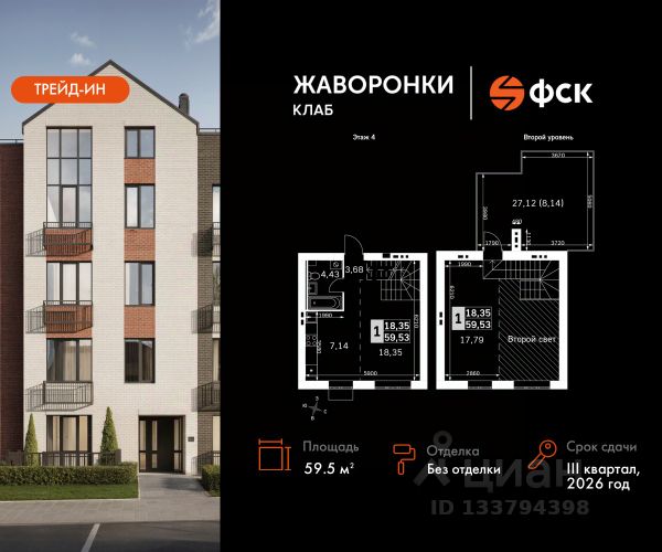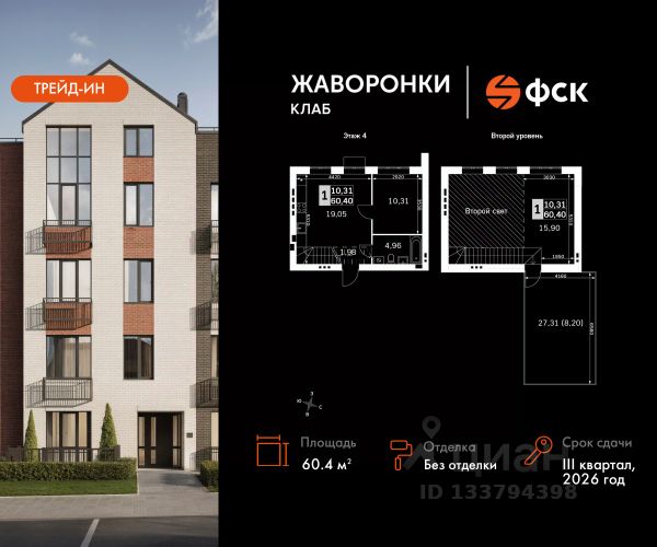 Прямая продажа от застройщика! Загородный жилой комплекс класса Комфорт Плюс. Продаётся 2-к квартира номер 161 общей площадью 54.41 кв.м на 4-м этаже 4 этажного дома. Без отделки. Особенности: - Квартира доступна к покупке в Trade-In. - Распашная планировка - отличное сочетание удобства и свободы. - Гостевой санузел - комфорт и удобство для ваших гостей. - Просторная кухня - место для семейных ужинов и кулинарных экспериментов. - Наличие острова на кухне - удобство и стиль для вашей кухни. - Возможность добавить спальное место - дополнительный комфорт для гостей. - Ниша под шкаф - компактное и удобное место для вещей. - Лоджия - уютное место для отдыха и тишины. - Вид из окна: улица - Вид из окна: двор - Просторная 2-комнатная квартира - Бесплатный трансфер до загородного поселка - 5 минут до МЦД-4 - Отличный вариант для проживания или инвестиций - Двухуровневая квартира - пространство и стиль в одном. - Своя благоустроенная набережная в поселке, - Престижная школа и детский сад на территории, - Закрытая территория и видеонаблюдение - Собственный парк вдоль набережной - Круглосуточная охрана - Зона с беседками и барбекю - Живописная река в пешей доступности Квартиру можно приобрести с предчистовой (White box) и чистовой отделкой. Вам не придётся заниматься черновыми работами, а трудоемкий ремонт мы возьмем на себя! Расположение комплекса: Для создания гармоничного пространства в проекте собрана вся необходимая инфраструктура, начиная от закрытых дворов с детскими площадками и зонами отдыха, тренажерного спортивного зала с мини-саунами и детской комнаты, до благоустроенной набережной, где разместится большой игровой хаб с прогулочным маршрутом и зоной барбекю. Благоприятная роза ветров и отсутствие производств влияют на качество воздуха. Вода и природа успокаивают и заряжают энергией. В жилом комплексе "Жаворонки Клаб" создана современная образовательная среда с полным циклом обучения - от детского сада до старших классов. Школа 560 мест с инновационным оснащением. Детский сад 260 мест. Все образовательные учреждения будут муниципальными и записаться в них сможет каждый маленький житель комплекса. Дорога до школы или детского сада займет не более 5 минут. Ваш ребенок поспит подольше и не опоздает к первому уроку! Здесь также будет расположена муниципальная поликлиника, административно-бытовой комплекс, магазины и кафе. Транспортная доступность: В 30 м от территории ЖК находятся остановки общественного транспорта, откуда можно добраться до ближайших железнодорожных станций Санино (5 мин.), Крёкшино (7 мин.) и Жаворонки (7 мин.), а в 10 минутах - остановки маршрутов, идущих до станций метро Саларьево и Парк Победы. Съезд на Минское шоссе расположен в 700 м от ЖК. Внутренняя инфраструктура: В рамках проекта будут построены муниципальные детский сад и общеобразовательная школа, административно-бытовой комплекс (магазины формата "у дома", точки бытовых услуг, street-retail, кафе, кофейня, аптека, а также многофункциональный торгово-развлекатель