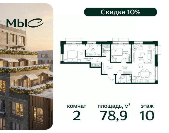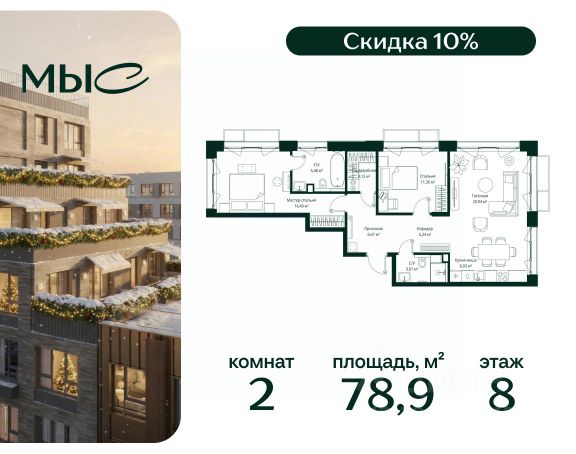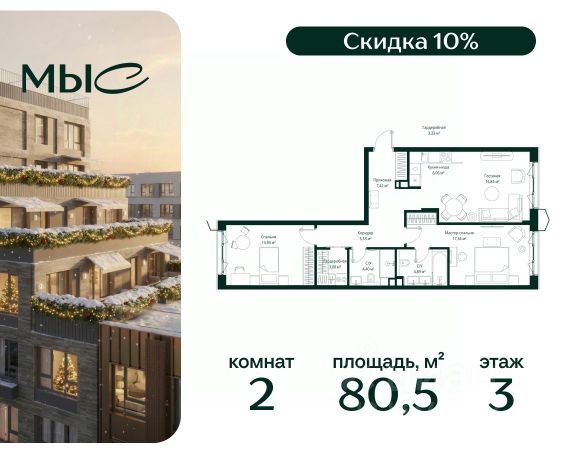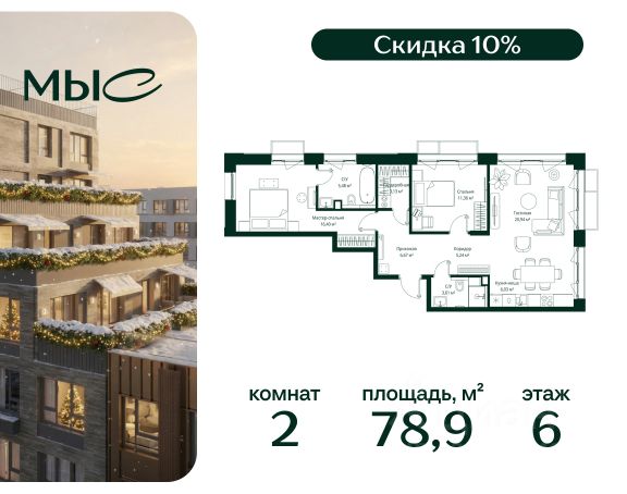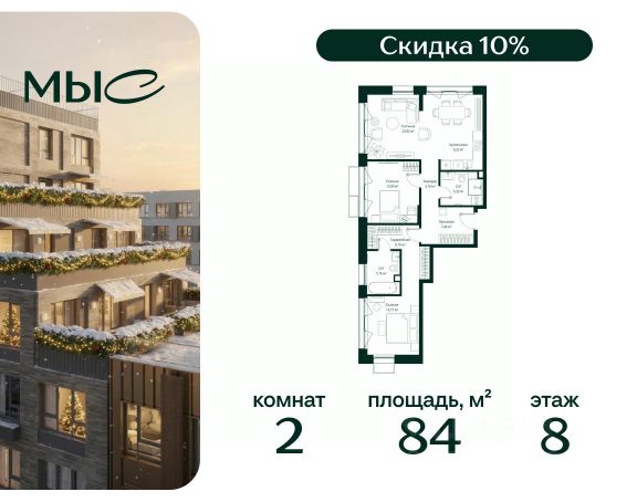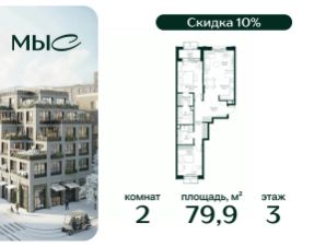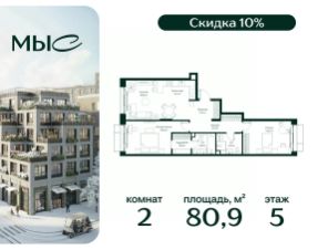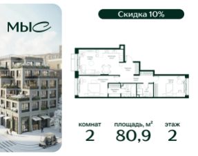 Прямая продажа от застройщика. Продаётся 2-комнатная квартира общей площадью 80.85 м² без отделки в премиальном жилом комплексе "МЫС" на 2-м этаже 12 этажного дома. Квартира расположена в корпусе "Волга". Проект МЫС — это, прежде всего, идеальное место для семей. В рамках проекта построят государственную школу, два детских сада и дворец спорта площадью 20 000 м2 с термальным комплексом, выплывным бассейном, фитнес-залом, теннисными, сквош и падел кортами и секциями для детей. На территории площадью, сравнимой с тремя парками Зарядье, появятся кафе и рестораны, пруд с набережной, спортивные и детские площадки, скейт-парк, лыжные и веломаршруты. Расположение: - 2 минуты до скоростной трассы М1 и Минского шоссе; - 10 минут до МКАД; - 15 минут до МЦД Лесной Городок - 20 минут до делового центра "Москва-Сити"; - 28 минут до аэропорта "Внуково". Благоустройство: - велосипедные и лыжные маршруты; - собственная набережная и парк; - лаунж-зоны в окружении природы; - беседки у очага; - дворец спорта площадью 20 000 м²; - термальный комплекс с тремя бассейнами; - 4 теннисных и падел-корта; - 6 сквош-кортов; - многофункциональный спортзал; - скейт-парк; - просторная площадь для прогулок с фонтаном; - детский клуб с творческими секциями; - гастро-доминанта; - кафе у пруда, рестораны, ритейл. Окружение - соседство с лесным фондом; - школа на 1250 мест и 2 детских сада на 350 и 255 мест; - Дубковский и Подушкинский леса, парк "Рассказовка", Мещерский парк. Действуют специальные условия при 100% оплате, подробности уточняйте у менеджера в офисе продаж. 2-комнатная квартира в новостройке в деревне Ликино Московской области.