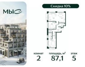 Прямая продажа от застройщика. Продаётся 2-комнатная квартира общей площадью 66.02 м² без отделки в премиальном жилом комплексе "МЫС" на 10-м этаже 12 этажного дома. Квартира расположена в корпусе "Волга". Проект МЫС — это, прежде всего, идеальное место для семей. В рамках проекта построят государственную школу, два детских сада и дворец спорта площадью 20 000 м2 с термальным комплексом, выплывным бассейном, фитнес-залом, теннисными, сквош и падел кортами и секциями для детей. На территории площадью, сравнимой с тремя парками Зарядье, появятся кафе и рестораны, пруд с набережной, спортивные и детские площадки, скейт-парк, лыжные и веломаршруты. Расположение: - 2 минуты до скоростной трассы М1 и Минского шоссе; - 10 минут до МКАД; - 15 минут до МЦД Лесной Городок - 20 минут до делового центра "Москва-Сити"; - 28 минут до аэропорта "Внуково". Благоустройство: - велосипедные и лыжные маршруты; - собственная набережная и парк; - лаунж-зоны в окружении природы; - беседки у очага; - дворец спорта площадью 20 000 м²; - термальный комплекс с тремя бассейнами; - 4 теннисных и падел-корта; - 6 сквош-кортов; - многофункциональный спортзал; - скейт-парк; - просторная площадь для прогулок с фонтаном; - детский клуб с творческими секциями; - гастро-доминанта; - кафе у пруда, рестораны, ритейл. Окружение - соседство с лесным фондом; - школа на 1250 мест и 2 детских сада на 350 и 255 мест; - Дубковский и Подушкинский леса, парк "Рассказовка", Мещерский парк. Действуют специальные условия при 100% оплате, подробности уточняйте у менеджера в офисе продаж. Купить 2-комнатную квартиру в новостройке в городском округе Одинцовском Московской области.