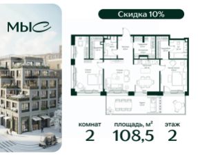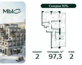 Прямая продажа от застройщика. Продаётся 2-комнатная квартира общей площадью 80.85 м² без отделки в премиальном жилом комплексе "МЫС" на 2-м этаже 12 этажного дома. Квартира расположена в корпусе "Волга". Проект МЫС — это, прежде всего, идеальное место для семей. В рамках проекта построят государственную школу, два детских сада и дворец спорта площадью 20 000 м2 с термальным комплексом, выплывным бассейном, фитнес-залом, теннисными, сквош и падел кортами и секциями для детей. На территории площадью, сравнимой с тремя парками Зарядье, появятся кафе и рестораны, пруд с набережной, спортивные и детские площадки, скейт-парк, лыжные и веломаршруты. Расположение: - 2 минуты до скоростной трассы М1 и Минского шоссе; - 10 минут до МКАД; - 15 минут до МЦД Лесной Городок - 20 минут до делового центра "Москва-Сити"; - 28 минут до аэропорта "Внуково". Благоустройство: - велосипедные и лыжные маршруты; - собственная набережная и парк; - лаунж-зоны в окружении природы; - беседки у очага; - дворец спорта площадью 20 000 м²; - термальный комплекс с тремя бассейнами; - 4 теннисных и падел-корта; - 6 сквош-кортов; - многофункциональный спортзал; - скейт-парк; - просторная площадь для прогулок с фонтаном; - детский клуб с творческими секциями; - гастро-доминанта; - кафе у пруда, рестораны, ритейл. Окружение - соседство с лесным фондом; - школа на 1250 мест и 2 детских сада на 350 и 255 мест; - Дубковский и Подушкинский леса, парк "Рассказовка", Мещерский парк. Действуют специальные условия при 100% оплате, подробности уточняйте у менеджера в офисе продаж. 2-комнатная квартира первичка в городском округе Одинцовском Московской области.
