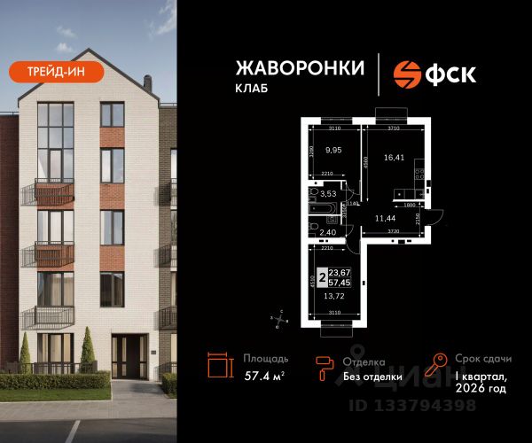 Прямая продажа от застройщика! Загородный жилой комплекс класса Комфорт Плюс. Продаётся 2-к квартира номер 107 общей площадью 51.48 кв.м на 4-м этаже 4 этажного дома. Без отделки. Особенности: - Квартира доступна к покупке в Trade-In. - Линейная планировка - максимальная функциональность и удобство. - Гибкая планировка - создайте пространство по своему вкусу. - Увеличенная высота потолков - ощущение простора и легкости. - Двухуровневая квартира - пространство и стиль в одном. - Второй свет - уникальная атмосфера с открытыми пространствами. - Терраса - место для загара и вечерних посиделок. - Вид из окна: улица - Просторная 2-комнатная квартира - Бесплатный трансфер до загородного поселка - 5 минут до МЦД-4 - Отличный вариант для проживания или инвестиций - Двухуровневая квартира - пространство и стиль в одном. - Своя благоустроенная набережная в поселке, - Престижная школа и детский сад на территории, - Закрытая территория и видеонаблюдение - Собственный парк вдоль набережной - Круглосуточная охрана - Зона с беседками и барбекю - Живописная река в пешей доступности Квартиру можно приобрести с предчистовой (White box) и чистовой отделкой. Вам не придётся заниматься черновыми работами, а трудоемкий ремонт мы возьмем на себя! Расположение комплекса: Для создания гармоничного пространства в проекте собрана вся необходимая инфраструктура, начиная от закрытых дворов с детскими площадками и зонами отдыха, тренажерного спортивного зала с мини-саунами и детской комнаты, до благоустроенной набережной, где разместится большой игровой хаб с прогулочным маршрутом и зоной барбекю. Благоприятная роза ветров и отсутствие производств влияют на качество воздуха. Вода и природа успокаивают и заряжают энергией. В жилом комплексе "Жаворонки Клаб" создана современная образовательная среда с полным циклом обучения - от детского сада до старших классов. Школа 560 мест с инновационным оснащением. Детский сад 260 мест. Все образовательные учреждения будут муниципальными и записаться в них сможет каждый маленький житель комплекса. Дорога до школы или детского сада займет не более 5 минут. Ваш ребенок поспит подольше и не опоздает к первому уроку! Здесь также будет расположена муниципальная поликлиника, административно-бытовой комплекс, магазины и кафе. Транспортная доступность: В 30 м от территории ЖК находятся остановки общественного транспорта, откуда можно добраться до ближайших железнодорожных станций Санино (5 мин.), Крёкшино (7 мин.) и Жаворонки (7 мин.), а в 10 минутах - остановки маршрутов, идущих до станций метро Саларьево и Парк Победы. Съезд на Минское шоссе расположен в 700 м от ЖК. Внутренняя инфраструктура: В рамках проекта будут построены муниципальные детский сад и общеобразовательная школа, административно-бытовой комплекс (магазины формата "у дома", точки бытовых услуг, street-retail, кафе, кофейня, аптека, а также многофункциональный торгово-развлекательный центр с ФОК и амбулаторией. Для удобства и комфорта жителей, когда все "под рукой" мы разм