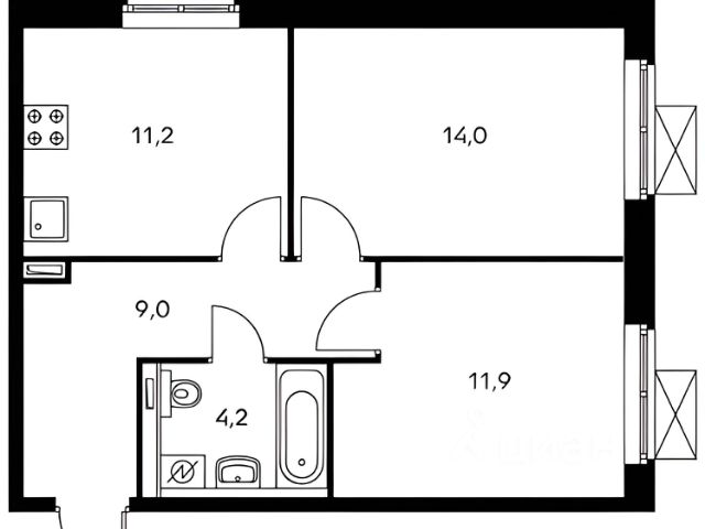 Продается 2-комн. квартира площадью 52,6 кв.м на 3 этаже 21 этажного дома в ЖК "Союзный" от федерального девелопера ГК "Вектор". Расположение, транспортная доступность Жилой комплекс "Союзный" — это квартал из 6 монолитных домов комфорт-класса высотой до 25 этажей, строящийся в 8-ом микрорайоне города Одинцово на улице Маковского. В продаже квартиры площадью от 37,2 до 88 кв. м, с потолками высотой 2,7 м, лоджиями, 2-мя санузлами в квартирах с 3-мя комнатами. Квартиры без отделки и с отделкой эконом, бизнес или комфорт класса. Квартал располагается на территории с отличной транспортной доступностью: - 8 км от МКАД; - 15 минут пешком до станции "Одинцово" МЦД-1; - рядом находится автобусная остановка, от которой можно доехать до метро "Парк Победы", "Киевская", "Юго-Западная"; На личном автотранспорте доехать от комплекса по Минскому шоссе к новой развязке с МКАД можно примерно за 20 минут. В качестве альтернативы можно выбрать Можайское шоссе. Даже в час пик передвигаться по нему можно со скоростью 50 км/ч. Кроме того, можно выбрать платную трассу Северный обход Одинцово. Путь от квартала до Северо-Западной хорды на автомобиле займет 25-35 минут, а до ТТК и Садового кольца - 1 час. В квартале запланировано строительство торгового центра, детского сада на 245 мест (сдача - 4 кв 2025 г.), многоуровневой открытой стоянки на 257 автомобилей, многоуровневого подземного паркинга, наземно-подземного паркинга с эксплуатируемой кровлей и других объектов. На внутренней территории квартала разместятся детский игровой комплекс с резиновым покрытием, спортплощадка, зоны отдыха для взрослых, деревья, кустарники и газоны. В шаговой доступности от ЖК "Союзный" располагаются школа, детский сад, профучилище, несколько ТЦ, кинотеатр "Юность", Ледовый дворец, сквер Союзный, Глазынинский пруд с качелями и площадкой для хоккея. В районе ЖК нет промышленных производств, а совсем близко начинаются лесные массивы, занимающие площадь свыше 70 000 га. Этот район считается одним из самых экологически чистых в Подмосковье.*