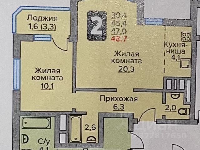Общая площадь - 39,5 кв.м. Плюс больших 2 лоджии.