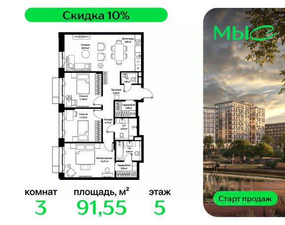 Прямая продажа от застройщика. Продаётся 3-к квартира общей площадью 95.96 м² без отделки в премиальном жилом комплексе "МЫС" на 11-м этаже 12 этажного дома. Квартира расположена в корпусе "Сибирь". ЖК "МЫС" - идеальное место для тех, кто хочет объединить городскую жизнь с близостью к природе. Здесь каждый найдет формат жилья на свой вкус: многоквартирные и клубные дома для больших семей, ценящих приватность и простор, частные дома и таунхаусы для истинных фанатов загородной жизни, которые не готовы отказываться от городского комфорта. Расположение: - 2 мин. до скоростной трассы М1 и Минского шоссе; - 10 мин. до МКАД; - 20 мин. до делового центра "Москва-Сити"; - 25 мин. до ст. метро "Рассказовка"; - 28 мин. до аэропорта "Внуково". Благоустройство: - авторские лобби; - уютные зоны ожидания и библиотека; - велосипедные и лыжные маршруты; - собственная набережная и парк; - лаунж-зоны в окружении природы; - беседки у очага; - дворец спорта площадью 20 000 м²; - термальный комплекс с тремя бассейнами; - 4 теннисных и падел-корта; - 6 сквош-кортов; - многофункциональный спортзал; - скейт-парк; - просторная площадь для прогулок с фонтаном; - детский клуб с творческими секциями; - гастро-доминанта; - кафе у пруда, рестораны, ритейл. Окружение - соседство с лесным фондом; - школа на 1250 мест и 2 детских сада на 350 и 255 мест; - резерват "Долина реки Вяземки", Дубковский и Подушкинский леса, парк "Рассказовка", Мещерский парк.Компания MR Group предлагает своим клиентам специальные условия приобретения квартир в рамках программ ипотечного кредитования от банков-партнеров.