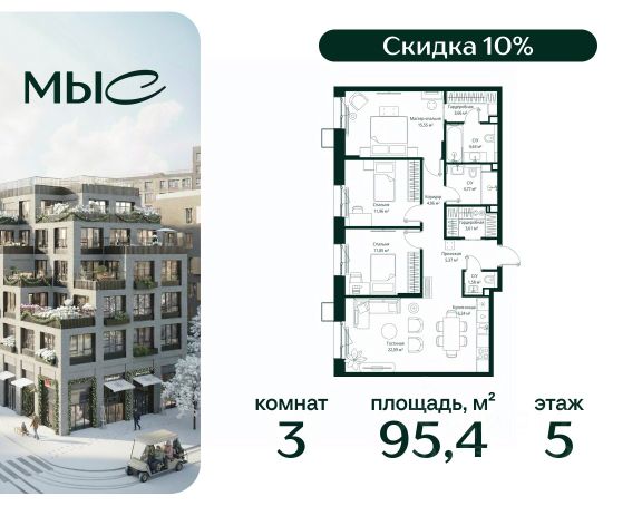 Прямая продажа от застройщика. Продаётся 3-комнатная квартира общей площадью 98.26 м² без отделки в премиальном жилом комплексе "МЫС" на 5-м этаже 12 этажного дома. Квартира расположена в корпусе "Сибирь". Проект МЫС — это, прежде всего, идеальное место для семей. В рамках проекта построят государственную школу, два детских сада и дворец спорта площадью 20 000 м2 с термальным комплексом, выплывным бассейном, фитнес-залом, теннисными, сквош и падел кортами и секциями для детей. На территории площадью, сравнимой с тремя парками Зарядье, появятся кафе и рестораны, пруд с набережной, спортивные и детские площадки, скейт-парк, лыжные и веломаршруты. Расположение: - 2 минуты до скоростной трассы М1 и Минского шоссе; - 10 минут до МКАД; - 15 минут до МЦД Лесной Городок - 20 минут до делового центра "Москва-Сити"; - 28 минут до аэропорта "Внуково". Благоустройство: - велосипедные и лыжные маршруты; - собственная набережная и парк; - лаунж-зоны в окружении природы; - беседки у очага; - дворец спорта площадью 20 000 м²; - термальный комплекс с тремя бассейнами; - 4 теннисных и падел-корта; - 6 сквош-кортов; - многофункциональный спортзал; - скейт-парк; - просторная площадь для прогулок с фонтаном; - детский клуб с творческими секциями; - гастро-доминанта; - кафе у пруда, рестораны, ритейл. Окружение - соседство с лесным фондом; - школа на 1250 мест и 2 детских сада на 350 и 255 мест; - Дубковский и Подушкинский леса, парк "Рассказовка", Мещерский парк. Действуют специальные условия при 100% оплате, подробности уточняйте у менеджера в офисе продаж.