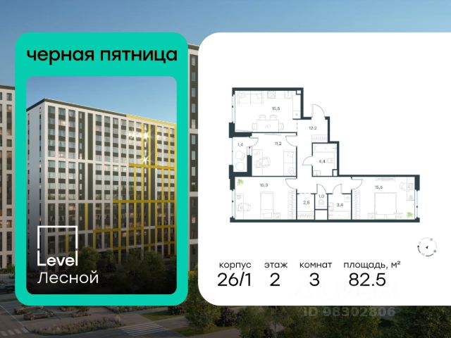 Общая площадь квартиры 80,85 метров, изолированные комнаты 18,5, 17,69 и 13,97 метров, кухня-гостиная 15,2 метров, то есть по факту это евро трешка. Два санузла.