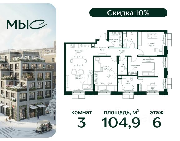 • ✓ В базе Циан 119 3-комнатных квартир на 6 этаже в городском округе Одинцовском Московской области