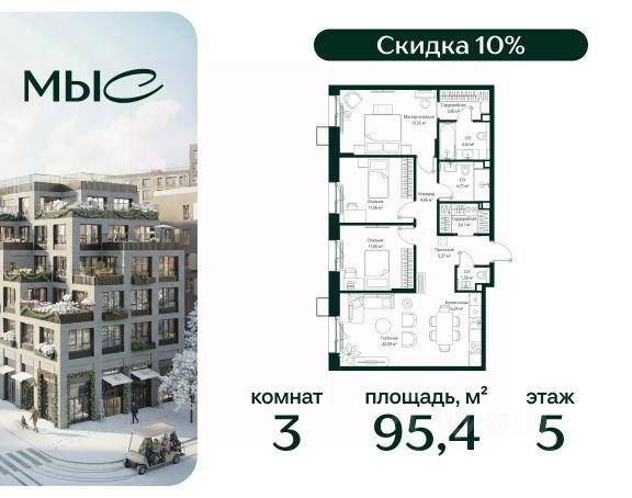 Прямая продажа от застройщика. Продаётся 3-комнатная квартира общей площадью 91.55 м² без отделки в премиальном жилом комплексе "МЫС" на 2-м этаже 12 этажного дома. Квартира расположена в корпусе "Сибирь". Проект МЫС — это, прежде всего, идеальное место для семей. В рамках проекта построят государственную школу, два детских сада и дворец спорта площадью 20 000 м2 с термальным комплексом, выплывным бассейном, фитнес-залом, теннисными, сквош и падел кортами и секциями для детей. На территории площадью, сравнимой с тремя парками Зарядье, появятся кафе и рестораны, пруд с набережной, спортивные и детские площадки, скейт-парк, лыжные и веломаршруты. Расположение: - 2 минуты до скоростной трассы М1 и Минского шоссе; - 10 минут до МКАД; - 15 минут до МЦД Лесной Городок - 20 минут до делового центра "Москва-Сити"; - 28 минут до аэропорта "Внуково". Благоустройство: - велосипедные и лыжные маршруты; - собственная набережная и парк; - лаунж-зоны в окружении природы; - беседки у очага; - дворец спорта площадью 20 000 м²; - термальный комплекс с тремя бассейнами; - 4 теннисных и падел-корта; - 6 сквош-кортов; - многофункциональный спортзал; - скейт-парк; - просторная площадь для прогулок с фонтаном; - детский клуб с творческими секциями; - гастро-доминанта; - кафе у пруда, рестораны, ритейл. Окружение - соседство с лесным фондом; - школа на 1250 мест и 2 детских сада на 350 и 255 мест; - Дубковский и Подушкинский леса, парк "Рассказовка", Мещерский парк.Действуют специальные условия при 100% оплате, подробности уточняйте у менеджера в офисе продаж. 3-комнатная квартира в ипотеку в деревне Ликино Московской области.