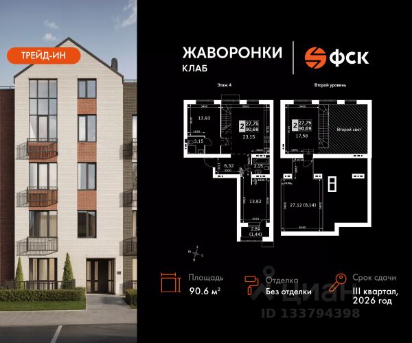Корпус сдан! Прямая продажа от застройщика! Загородный жилой комплекс класса Комфорт Плюс. Продаётся 3-к квартира номер 16 в сданном корпусе общей площадью 72.8 кв.м на 3-м этаже 4 этажного дома. Особенности: - Квартира доступна к покупке в Trade-In. - Угловая планировка - больше пространства для ваших идей. - Бесплатный трансфер до загородного поселка - 5 минут до МЦД-4 - Отличный вариант для проживания или инвестиций - Двухуровневая квартира - пространство и стиль в одном. - Своя благоустроенная набережная в поселке, - Престижная школа и детский сад на территории, - Закрытая территория и видеонаблюдение - Собственный парк вдоль набережной - Круглосуточная охрана - Зона с беседками и барбекю - Живописная река в пешей доступности Расположение комплекса: Для создания гармоничного пространства в проекте собрана вся необходимая инфраструктура, начиная от закрытых дворов с детскими площадками и зонами отдыха, тренажерного спортивного зала с мини-саунами и детской комнаты, до благоустроенной набережной, где разместится большой игровой хаб с прогулочным маршрутом и зоной барбекю. Благоприятная роза ветров и отсутствие производств влияют на качество воздуха. Вода и природа успокаивают и заряжают энергией. В жилом комплексе "Жаворонки Клаб" создана современная образовательная среда с полным циклом обучения - от детского сада до старших классов. Школа 560 мест с инновационным оснащением. Детский сад 260 мест. Все образовательные учреждения будут муниципальными и записаться в них сможет каждый маленький житель комплекса. Дорога до школы или детского сада займет не более 5 минут. Ваш ребенок поспит подольше и не опоздает к первому уроку! Здесь также будет расположена муниципальная поликлиника, административно-бытовой комплекс, магазины и кафе. Транспортная доступность: В 30 м от территории ЖК находятся остановки общественного транспорта, откуда можно добраться до ближайших железнодорожных станций Санино (5 мин.), Крёкшино (7 мин.) и Жаворонки (7 мин.), а в 10 минутах - остановки маршрутов, идущих до станций метро Саларьево и Парк Победы. Съезд на Минское шоссе расположен в 700 м от ЖК. Внутренняя инфраструктура: В рамках проекта будут построены муниципальные детский сад и общеобразовательная школа, административно-бытовой комплекс (магазины формата "у дома", точки бытовых услуг, street-retail, кафе, кофейня, аптека, а также многофункциональный торгово-развлекательный центр с ФОК и амбулаторией. Для удобства и комфорта жителей, когда все "под рукой" мы разместили в ЖК бесплатный тренажерный зал с раздевалками и мини-саунами. Сюда можно приходить самостоятельно или с личным тренером для функциональной тренировки. Для детей обустроена игровая с множеством развивающих сюжетных игр, а также различные "лазалки". Эта детская комната также подойдет для празднования дня рождения ребенка. Цены указаны с учетом скидки.