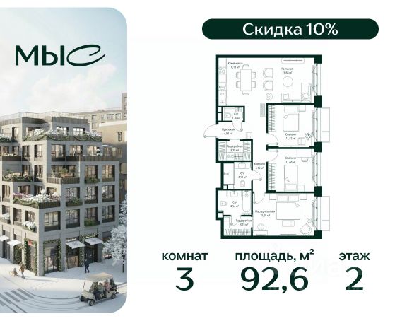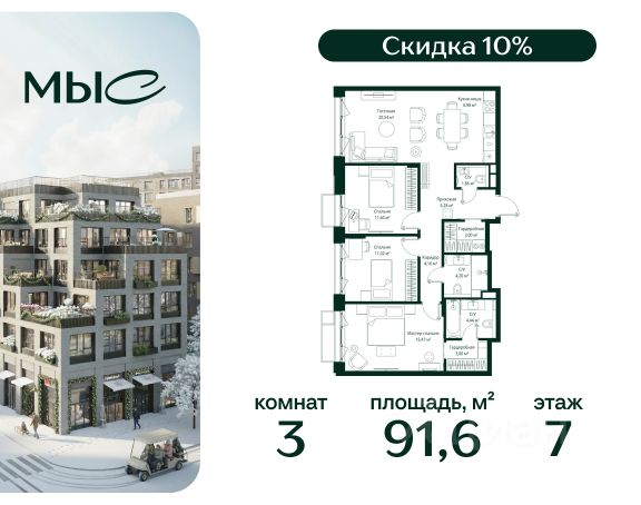 Указанная акционная стоимость доступна при 100% оплате или ипотеке без субсидирования. Цена действует до 31.12.2025 23:59:00. Стоимость без акции 11611730. Продаётся квартира с 3 комнатами общей площадью 49.90 кв. метров на 5 этаже жилого квартала комфорт-класса "Равновесие". Срок сдачи: 2 кв. 2024 На территории комплекса будет возведен детский сад на 360 мест, а на первых этажах жилых домов откроются кафе, магазины и все необходимое для удобства жителей. Локация "Равновесия" выделяется среди других пригородных ЖК разнообразием быстрых маршрутов до Москвы. Для автомобилистов преимуществом станут удобные выезды на Можайское шоссе, Рублёво-Успенское шоссе, Минское шоссе с платной трассой и другие. Также в пешей доступности находятся две ж/д станции — "Жаворонки" и "Здравница". Дорога на электропоезде до делового центра "Москва-Сити" составит всего 35 минут. Особенности ЖК: - Малоэтажная застройка: 4-6 этажей; - Благоустроенный пешеходный бульвар; - Пространства для отдыха и спорта; - Квартиры с террасами на последних этажах; - Квартиры с отдельным входом на первых этажах; - Внутренняя территория квартала свободна от машин; - Безбарьерная среда; - Помещения для хранения детских колясок и спортивного инвентаря. Продам 3-комнатную квартиру с отделкой от застройщика в городском округе Одинцовском Московской области.