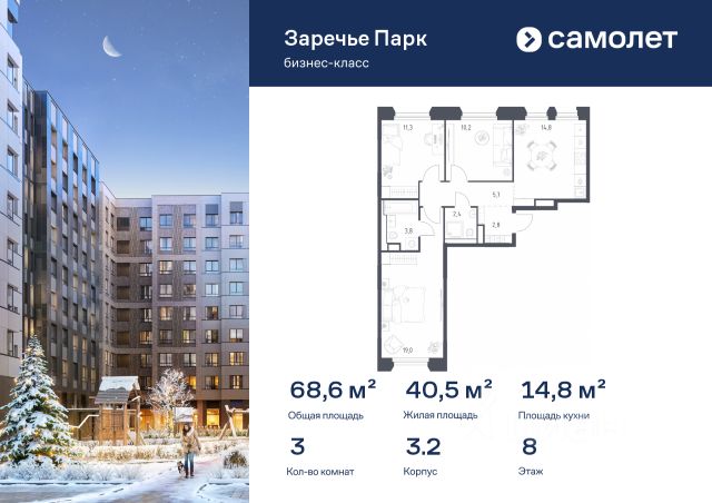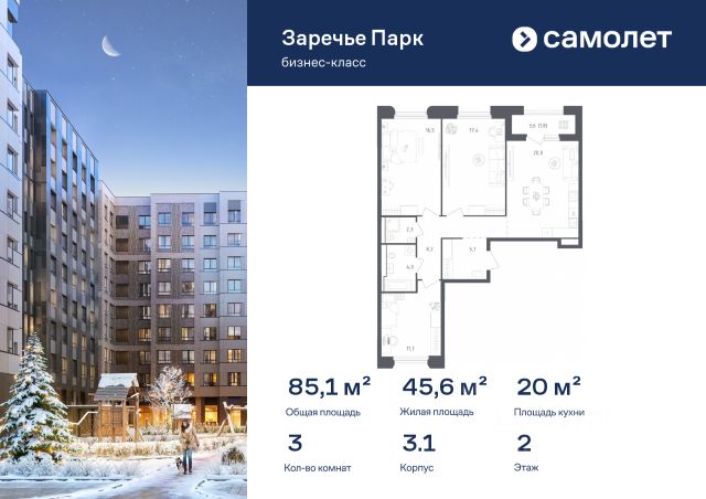 Продается трехкомнатная квартира в девятиэтажном монолитном доме жилого комплекса "Резиденции Сколково". Общая площадь квартиры - 99,7 кв. м, этаж 7 из 9. Срок сдачи - 2 квартал 2027 года. Новая резиденция 2.1 состоит из 5 секций: - 1 и 5 секции с отделкой White Box с возможностью повышения до дизайнерской за дополнительную плату - Остальные секции - без отделки ЖК "Резиденции Сколково" - это современный проект бизнес-класса, расположенный в престижном районе Сколково, у западной границы Москвы. ТРАНСПОРТНАЯ ДОСТУПНОСТЬ: - 0 км от МКАД - 10 минут на личном авто до метро "Озёрная" Солнцевской линии - 15 минут на личном авто до Москва-Сити по Кутузовскому проспекту - 20 минут на личном авто до центра по проспекту Генерала Дорохова - 24 минут на личном авто до центра по Мичуринскому проспекту ОСОБЕННОСТИ РЕЗИДЕНЦИИ 2.1: - панорамное остекление - французские балконы - сквозные входные группы с безбарьерным входом - стильная мягкая зона ожидания - колясочные во входных группах на 1 этажах - входная группа 1 этажа каждой секции оснащена санузлом - паркинг на -1 этажах - по 2 лифта: 1 пассажирский, 1 грузопассажирский ПРИВАТНОСТЬ: Огороженная, закрытая территория, круглосуточное видеонаблюдение, контроль доступа во внутренний двор. БЛАГОУСТРОЙСТВО И ИНФРАСТРУКТУРА: Масштабное озеленение в концепции "двора-парка" и множество площадок отдыха для взрослых и детей. В 5 минутах ходьбы расположен Мещерский лесопарк. В жилом комплексе уже построены и работают 2 муниципальных детских сада с бассейном, школа на этапе строительства. В непосредственной близости - частные и муниципальные детские сады и школы, кафе и рестораны, продуктовые магазины, салоны красоты и другие готовые объекты городской инфраструктуры. *В 3D туре представлена отделка "Фрунзуская классика. Business Plus"