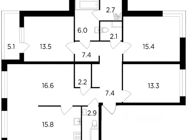 • ✓ В базе объявлений Циан 48 4-комнатных квартир в Одинцово.