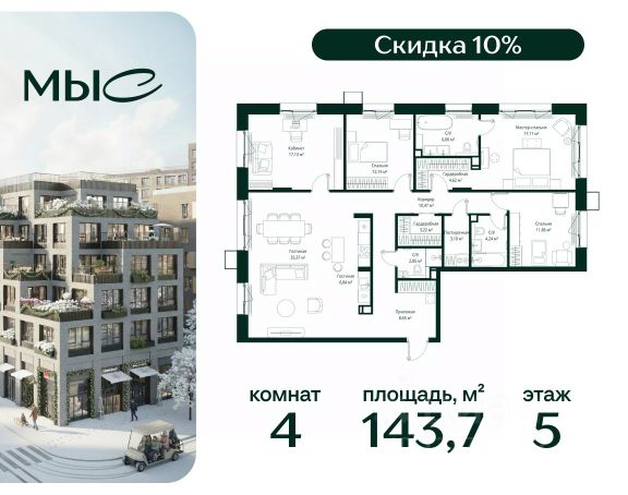 Прямая продажа от застройщика. Продаётся 4-комнатная квартира общей площадью 129.49 м² без отделки в премиальном жилом комплексе "МЫС" на 5-м этаже 12 этажного дома. Квартира расположена в корпусе "Волга". Проект МЫС — это, прежде всего, идеальное место для семей. В рамках проекта построят государственную школу, два детских сада и дворец спорта площадью 20 000 м2 с термальным комплексом, выплывным бассейном, фитнес-залом, теннисными, сквош и падел кортами и секциями для детей. На территории площадью, сравнимой с тремя парками Зарядье, появятся кафе и рестораны, пруд с набережной, спортивные и детские площадки, скейт-парк, лыжные и веломаршруты. Расположение: - 2 минуты до скоростной трассы М1 и Минского шоссе; - 10 минут до МКАД; - 15 минут до МЦД Лесной Городок - 20 минут до делового центра "Москва-Сити"; - 28 минут до аэропорта "Внуково". Благоустройство: - велосипедные и лыжные маршруты; - собственная набережная и парк; - лаунж-зоны в окружении природы; - беседки у очага; - дворец спорта площадью 20 000 м²; - термальный комплекс с тремя бассейнами; - 4 теннисных и падел-корта; - 6 сквош-кортов; - многофункциональный спортзал; - скейт-парк; - просторная площадь для прогулок с фонтаном; - детский клуб с творческими секциями; - гастро-доминанта; - кафе у пруда, рестораны, ритейл. Окружение - соседство с лесным фондом; - школа на 1250 мест и 2 детских сада на 350 и 255 мест; - Дубковский и Подушкинский леса, парк "Рассказовка", Мещерский парк. Действуют специальные условия при 100% оплате, подробности уточняйте у менеджера в офисе продаж.