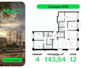 Прямая продажа от застройщика. Продаётся 4-комнатная квартира общей площадью 135.68 м² без отделки в премиальном жилом комплексе "МЫС" на 11-м этаже 12 этажного дома. Квартира расположена в корпусе "Волга". Проект МЫС — это, прежде всего, идеальное место для семей. В рамках проекта построят государственную школу, два детских сада и дворец спорта площадью 20 000 м2 с термальным комплексом, выплывным бассейном, фитнес-залом, теннисными, сквош и падел кортами и секциями для детей. На территории площадью, сравнимой с тремя парками Зарядье, появятся кафе и рестораны, пруд с набережной, спортивные и детские площадки, скейт-парк, лыжные и веломаршруты. Расположение: - 2 минуты до скоростной трассы М1 и Минского шоссе; - 10 минут до МКАД; - 15 минут до МЦД Лесной Городок - 20 минут до делового центра "Москва-Сити"; - 28 минут до аэропорта "Внуково". Благоустройство: - велосипедные и лыжные маршруты; - собственная набережная и парк; - лаунж-зоны в окружении природы; - беседки у очага; - дворец спорта площадью 20 000 м²; - термальный комплекс с тремя бассейнами; - 4 теннисных и падел-корта; - 6 сквош-кортов; - многофункциональный спортзал; - скейт-парк; - просторная площадь для прогулок с фонтаном; - детский клуб с творческими секциями; - гастро-доминанта; - кафе у пруда, рестораны, ритейл. Окружение - соседство с лесным фондом; - школа на 1250 мест и 2 детских сада на 350 и 255 мест; - Дубковский и Подушкинский леса, парк "Рассказовка", Мещерский парк.Действуют специальные условия при 100% оплате, подробности уточняйте у менеджера в офисе продаж. Продается 4-комнатная квартира в новостройке в городском округе Одинцовском Московской области.