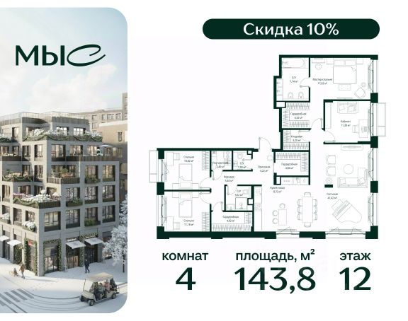 Прямая продажа от застройщика. Продаётся 4-комнатная квартира общей площадью 124.38 м² без отделки в премиальном жилом комплексе "МЫС" на 2-м этаже 12 этажного дома. Квартира расположена в корпусе "Сибирь". Проект МЫС — это, прежде всего, идеальное место для семей. В рамках проекта построят государственную школу, два детских сада и дворец спорта площадью 20 000 м2 с термальным комплексом, выплывным бассейном, фитнес-залом, теннисными, сквош и падел кортами и секциями для детей. На территории площадью, сравнимой с тремя парками Зарядье, появятся кафе и рестораны, пруд с набережной, спортивные и детские площадки, скейт-парк, лыжные и веломаршруты. Расположение: - 2 минуты до скоростной трассы М1 и Минского шоссе; - 10 минут до МКАД; - 15 минут до МЦД Лесной Городок - 20 минут до делового центра "Москва-Сити"; - 28 минут до аэропорта "Внуково". Благоустройство: - велосипедные и лыжные маршруты; - собственная набережная и парк; - лаунж-зоны в окружении природы; - беседки у очага; - дворец спорта площадью 20 000 м²; - термальный комплекс с тремя бассейнами; - 4 теннисных и падел-корта; - 6 сквош-кортов; - многофункциональный спортзал; - скейт-парк; - просторная площадь для прогулок с фонтаном; - детский клуб с творческими секциями; - гастро-доминанта; - кафе у пруда, рестораны, ритейл. Окружение - соседство с лесным фондом; - школа на 1250 мест и 2 детских сада на 350 и 255 мест; - Дубковский и Подушкинский леса, парк "Рассказовка", Мещерский парк.Действуют специальные условия при 100% оплате, подробности уточняйте у менеджера в офисе продаж.