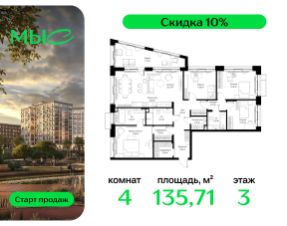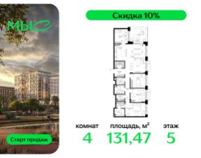 Прямая продажа от застройщика. Продаётся 4-комнатная квартира общей площадью 129.49 м² без отделки в премиальном жилом комплексе "МЫС" на 5-м этаже 12 этажного дома. Квартира расположена в корпусе "Волга". ЖК "МЫС" - идеальное место для тех, кто хочет объединить городскую жизнь с близостью к природе. Здесь каждый найдет формат жилья на свой вкус: многоквартирные и клубные дома для больших семей, ценящих приватность и простор, частные дома и таунхаусы для истинных фанатов загородной жизни, которые не готовы отказываться от городского комфорта. Расположение: - 2 мин. до скоростной трассы М1 и Минского шоссе; - 10 мин. до МКАД; - 20 мин. до делового центра "Москва-Сити"; - 25 мин. до ст. метро "Рассказовка"; - 28 мин. до аэропорта "Внуково". Благоустройство: - авторские лобби; - уютные зоны ожидания и библиотека; - велосипедные и лыжные маршруты; - собственная набережная и парк; - лаунж-зоны в окружении природы; - беседки у очага; - дворец спорта площадью 20 000 м²; - термальный комплекс с тремя бассейнами; - 4 теннисных и падел-корта; - 6 сквош-кортов; - многофункциональный спортзал; - скейт-парк; - просторная площадь для прогулок с фонтаном; - детский клуб с творческими секциями; - гастро-доминанта; - кафе у пруда, рестораны, ритейл. Окружение - соседство с лесным фондом; - школа на 1250 мест и 2 детских сада на 350 и 255 мест; - резерват "Долина реки Вяземки", Дубковский и Подушкинский леса, парк "Рассказовка", Мещерский парк.Компания MR Group предлагает своим клиентам специальные условия приобретения квартир в рамках программ ипотечного кредитования от банков-партнеров. Продается 4-комнатная квартира с отделкой от застройщика в городском округе Одинцовском Московской области.