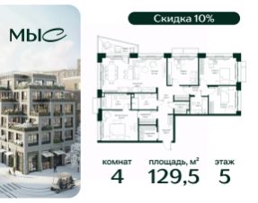 Прямая продажа от застройщика. Продаётся 4-комнатная квартира общей площадью 124.38 м² без отделки в премиальном жилом комплексе "МЫС" на 2-м этаже 12 этажного дома. Квартира расположена в корпусе "Сибирь". Проект МЫС — это, прежде всего, идеальное место для семей. В рамках проекта построят государственную школу, два детских сада и дворец спорта площадью 20 000 м2 с термальным комплексом, выплывным бассейном, фитнес-залом, теннисными, сквош и падел кортами и секциями для детей. На территории площадью, сравнимой с тремя парками Зарядье, появятся кафе и рестораны, пруд с набережной, спортивные и детские площадки, скейт-парк, лыжные и веломаршруты. Расположение: - 2 минуты до скоростной трассы М1 и Минского шоссе; - 10 минут до МКАД; - 15 минут до МЦД Лесной Городок - 20 минут до делового центра "Москва-Сити"; - 28 минут до аэропорта "Внуково". Благоустройство: - велосипедные и лыжные маршруты; - собственная набережная и парк; - лаунж-зоны в окружении природы; - беседки у очага; - дворец спорта площадью 20 000 м²; - термальный комплекс с тремя бассейнами; - 4 теннисных и падел-корта; - 6 сквош-кортов; - многофункциональный спортзал; - скейт-парк; - просторная площадь для прогулок с фонтаном; - детский клуб с творческими секциями; - гастро-доминанта; - кафе у пруда, рестораны, ритейл. Окружение - соседство с лесным фондом; - школа на 1250 мест и 2 детских сада на 350 и 255 мест; - Дубковский и Подушкинский леса, парк "Рассказовка", Мещерский парк. Действуют специальные условия при 100% оплате, подробности уточняйте у менеджера в офисе продаж. Продам 4-комнатную квартиру первичка в городском округе Одинцовском Московской области.