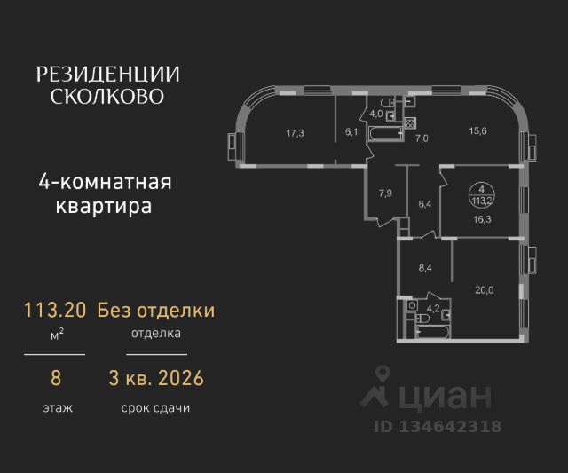 Продается двухкомнатная квартира в девятиэтажном монолитном доме жилого комплекса "Резиденции Сколково". Общая площадь квартиры - 80,8 кв. м, этаж 2 из 9. Срок сдачи - 3 квартал 2026 года. ЖК "Резиденции Сколково" - это современный проект бизнес-класса, расположенный в престижном районе Сколково, у западной границы Москвы. Транспортная доступность: - 0 км от МКАД - 10 минут на личном авто до метро "Озёрная" Солнцевской линии - 15 минут на личном авто до Москва-Сити по Кутузовскому проспекту - 20 минут на личном авто до центра по проспекту Генерала Дорохова - 24 минут на личном авто до центра по Мичуринскому проспекту Безопасность: Огороженная, закрытая территория, круглосуточное видеонаблюдение, контроль доступа во внутренний двор. Благоустройство и инфраструктура: Масштабное озеленение в концепции "двора-парка" и множество площадок отдыха для взрослых и детей. В 5 минутах ходьбы расположен Мещерский лесопарк. В жилом комплексе уже построены и работают 2 муниципальных детских сада с бассейном, планируется строительство 1 школы. В непосредственной близости - частные и муниципальные детские сады и школы, кафе и рестораны, продуктовые магазины, салоны красоты и другие готовые объекты городской инфраструктуры. Авторская архитектура: Авторская концепция архитектуры, входные группы на уровне земли. Для удобства жителей на первых этажах предусмотрены помещения для колясок и на -1 этажах для хранения велосипедов.