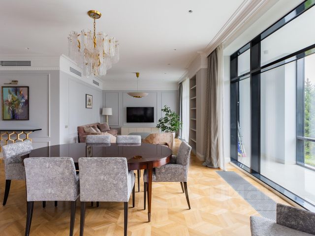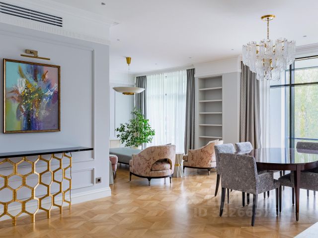 Лот: 95797. Эксклюзивно в продаже только у NF GROUP. Трофейный пентхаус 340 м² с возможностью оборудования террасы 300 м² занимает весь этаж клубного дома премиум-класса "Грюнвальд". Из панорамных окон открываются виды на лес, гольф-поле, реку Сетунь и бизнес-школу "Сколково". Уникальная резиденция с завораживающими панорамными видами на лес, территорию бизнес-школы "Сколково", гольф-поле и реку Сетунь. Пентхаус занимает весь этаж. Эффективная планировка от архитектурного бюро "Цимайло, Ляшенко и партнёры" поделена на три зоны: • Общественная — парадный холл, гостиная, столовая, гардеробная, гостевой санузел, кухня. • Приватная — кабинет, мастер-сьют со спальней, гардеробной, ванной комнатой и make-up зоной. • Детская — четыре спальни, гардеробные и санузлы. Дополнительно предусмотрены: хозяйственный блок, кладовая и серверная комнаты. Дизайн интерьера разработан и полностью реализован архитектурным бюро Yodezeen, ведущим проекты в Москве, Майами, Лондоне, Дубае и других городах мира. В отделке использованы эксклюзивные материалы: настенные панели из шпона американского ореха, натуральный камень, штучный паркет из массива дуба. Бренд-лист high-end производителей: • Мебель — Minotti, Poltrona Frau, Poliform, Rugiano • Сантехника — Antonio Lupi, Gessi • Декоративный свет — Roll & Hill, Bert Frank, Giopato & Coombes • Двери — Linvisibile • Кухня — Valcucine • Встроенная техника — Gaggenau Пентхаус оснащён дровяным камином, системой кондиционирования и приточно-вытяжной вентиляцией с фильтрацией воздуха. Управление светом, климатом, аудио и шторами осуществляется через систему "умный дом". Особое внимание заслуживает коллекция современного искусства, подобранная под руководством галеристки Марины Гисич — эстетика, способная удовлетворить самых взыскательных ценителей. Транспортная доступность: 10 минут до станции метро "Славянский бульвар", прямой выезд на МКАД и Кутузовский проспект. До "Москва-Сити" — 15 минут на автомобиле. Инфраструктура: В пешей доступности — магазины "Азбука Вкуса", фермерские лавки, кафе, рестораны, аптеки, салоны красоты (SlowMo, Buro Beauty), лучшие фитнес-клубы (Rink Fitness, World Class, Pro Trener), академия большого тенниса Skolkovo (4000 м²), гольф-клуб Skolkovo (18-луночное поле, спроектированное Джеком Никлаусом), гимназия "А-Статус", Международная гимназия Сколково, Cambridge International School, кампус МШУ "Сколково", лесопарковая зона площадью 16 гектаров. Оперативный показ. Участник ассоциации агентств элитной недвижимости AREA