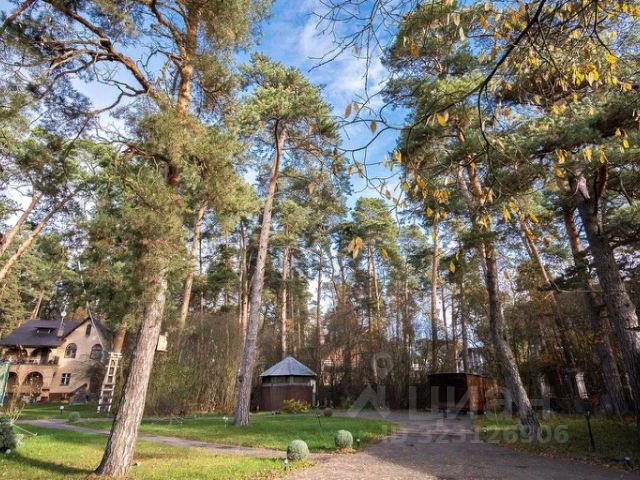 Дом расположен на живописном участке с вековыми соснами, имеющим уникальное расположение с двумя соседями. Участок правильной квадратной формы. Проведены ландшафтные работы: высажены кустарники и декоративные деревья, вымощены дорожки и установлено освещение.