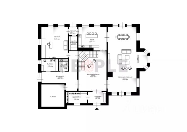 1-й этаж: Терраса- 20,5кв.м, прихожая-9,3кв.м, гардеробная-5,4кв.м, отдельный санузел-1,4кв.м, комната для котла и бойлера-4,6кв.м, коридор-7,1кв.м, ванная комната-3,8кв.м, оборудованная кухня-14,8кв.м, гостиная-19,9кв.м, комната-11,2кв.м.