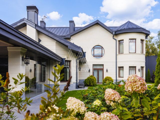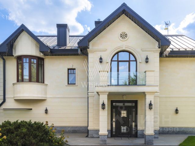 Эксклюзив от собственника. Без посредников и скрытых комиссий! Лучшее предложение на Рублево-Успенском шоссе. Архитектурное превосходство, каменный замок. В престижном экологически чистом районе Подмосковья, в 10 минутах от МКАД и 30 минутах от Красной площади продаётся загородный особняк, построенный по индивидуальному архитектурному проекту (единственный в своем роде) в стиле романтического модерна начала XX века. Дом строился для себя (!). Дом монолитно-кирпичного типа. Все этапы строительства проводились в строгой последовательности с учётом повышенных стандартов по теплосбережению, шумоизоляции. Зона дневного пребывания расположена на первом этаже. Составляющие ее гостиная, столовая и холл пространственно объедены между собой. На этаже располагается остекленная веранда с мангальной зоной и гостевая комната. Второй этаж занимают спальные апартаменты. Мансарда студийной планировки. Цокольный этаж с возможностью его оборудования под винный погреб, прачечную, кладовую, мастерскую, кинотеатр. В доме предусмотрен дровяной камин и лифт. 3.3 м потолки (местами до 4 м). Балконы и фасад дома оформлены кованными перилами и элементами декора, произведенные по специальному проекту ближневосточной мастерской. Внешняя облицовка произведена с использованием дорогостоящих материалов: мраморная мозаика, гранит, натуральный английский и итальянский камень. По фасаду сделано специальное световое оформление для подсветки архитектурных особенностей дома в ночное время. В особняке сделан черновой ремонт помещений под вашу чистовую отделку (выровнены стены, сделана отопительная система, разводка труб, теплый пол, гидроизоляция, проложены электрический и интернет кабель и др.). Индивидуальный закрытый подъезд к особняку. На участке имеется два парковочных места. Предусмотрена стоянка на 6 машиномест перед территорией дома. Сделан ландшафтный дизайн участка и прилегающей к нему территории. На участке и по его периметру высажены редкие сорта хвойных и плодовых деревьев. На территории участка имеется деревянный дом/баня из реликтовой сосны (диаметр 27 см), для отдыха в любое время года. Удобный выезд с территории поселка на Рублево-Успенское, Подушкинское, Минское и Новорижское шоссе. В 5 минутах на авто расположены: ТЦ, лыжероллерная трасса, детские парки, филиал МГИМО и инфраструктура г. Одинцово. Стань обладателем уникального особняка расположенного в престижном районе Подмосковья! Реализуй свои дизайнерские решения! Лучшая инвестиция в загородную элитную недвижимость. Быстрая сделка. Один собственник. Без долгов и обременений. Звоните-пишите и записывайтесь на оперативный показ! Купить дом без посредников в селе Лайково Московской области.